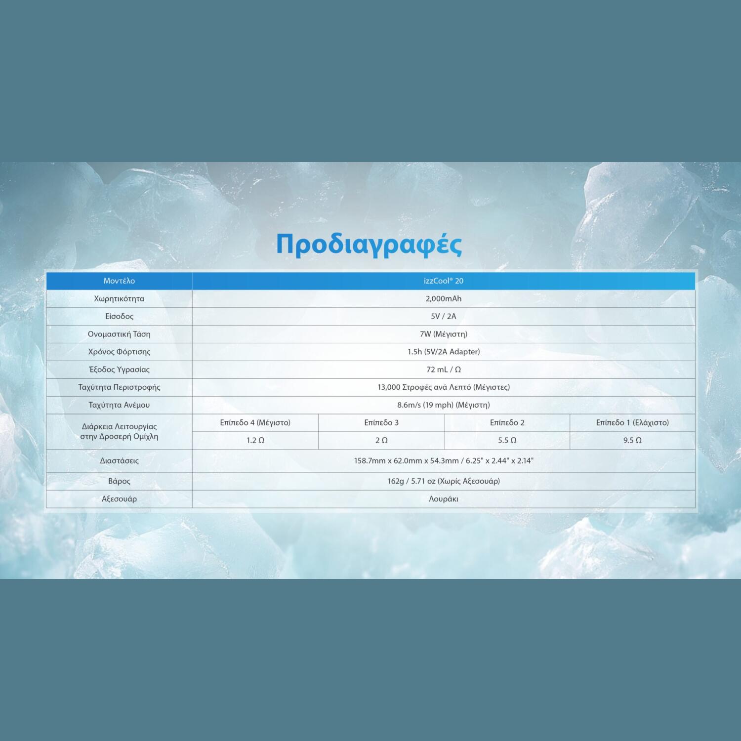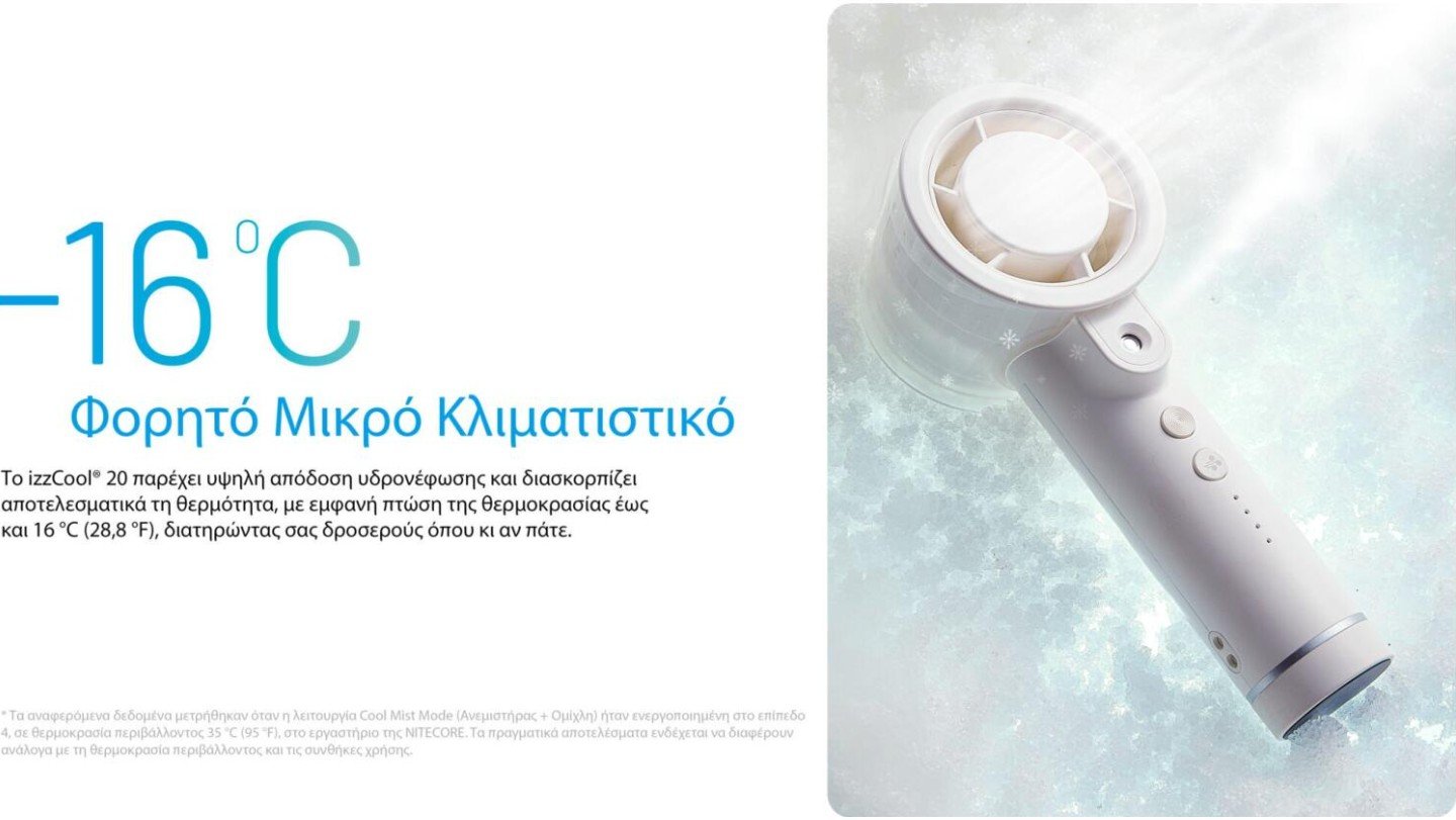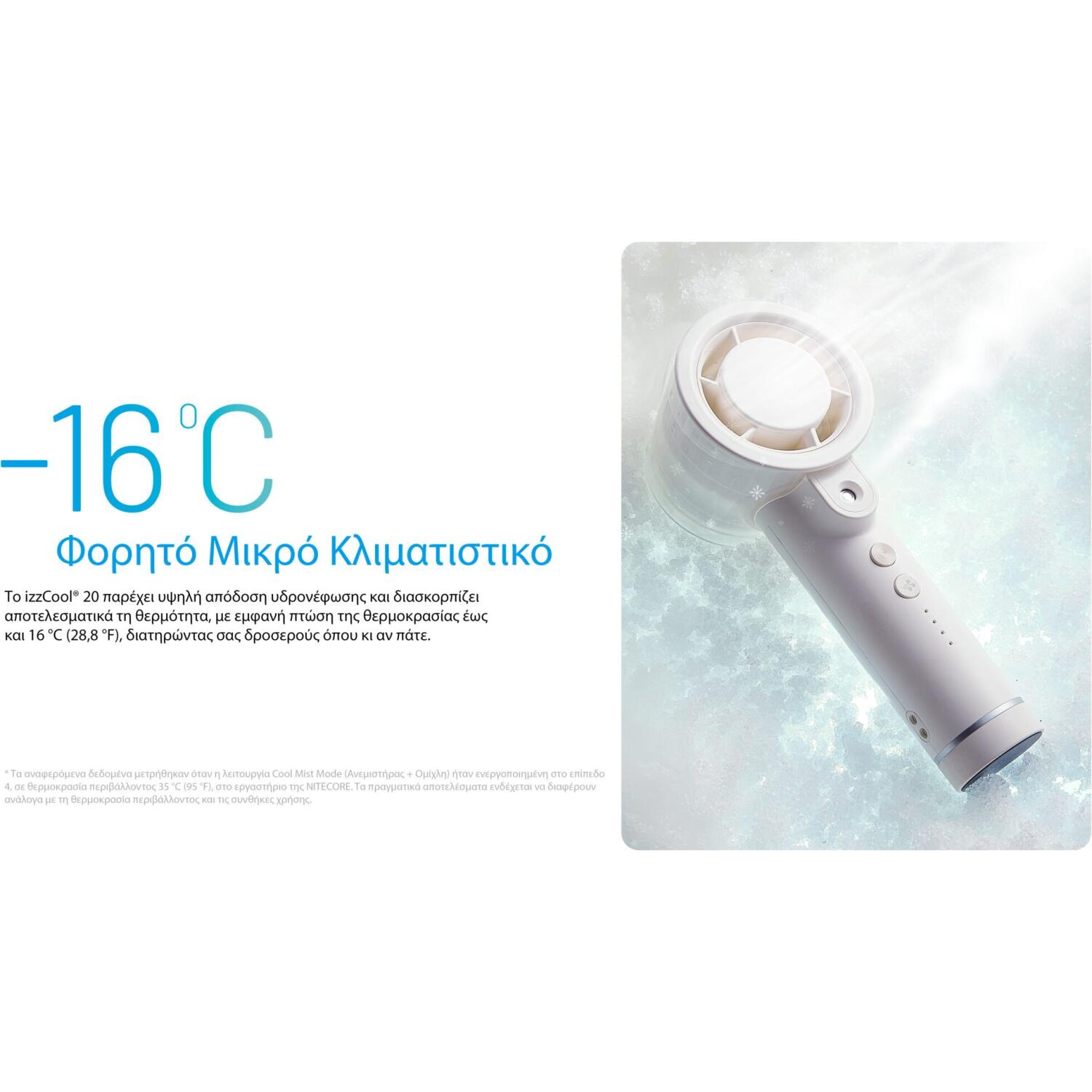 Ο ανεμιστήρας izzCool 20 της Nitecore είναι ένας ατομικός, επιτραπέζιος ανεμιστήρας με υγραντήρα και λουράκι χειρός. Είναι ένα φορητό κλιματιστικό, το οποίο μπορείτε να το μεταφέρετε παντού μαζί σας! Σας προσφέρει υψηλή απόδοση υδρονέφωσης και μπορεί να μειώσει τη θερμοκρασία έως και 16°C, ώστε να παραμένετε πάντα δροσεροί!