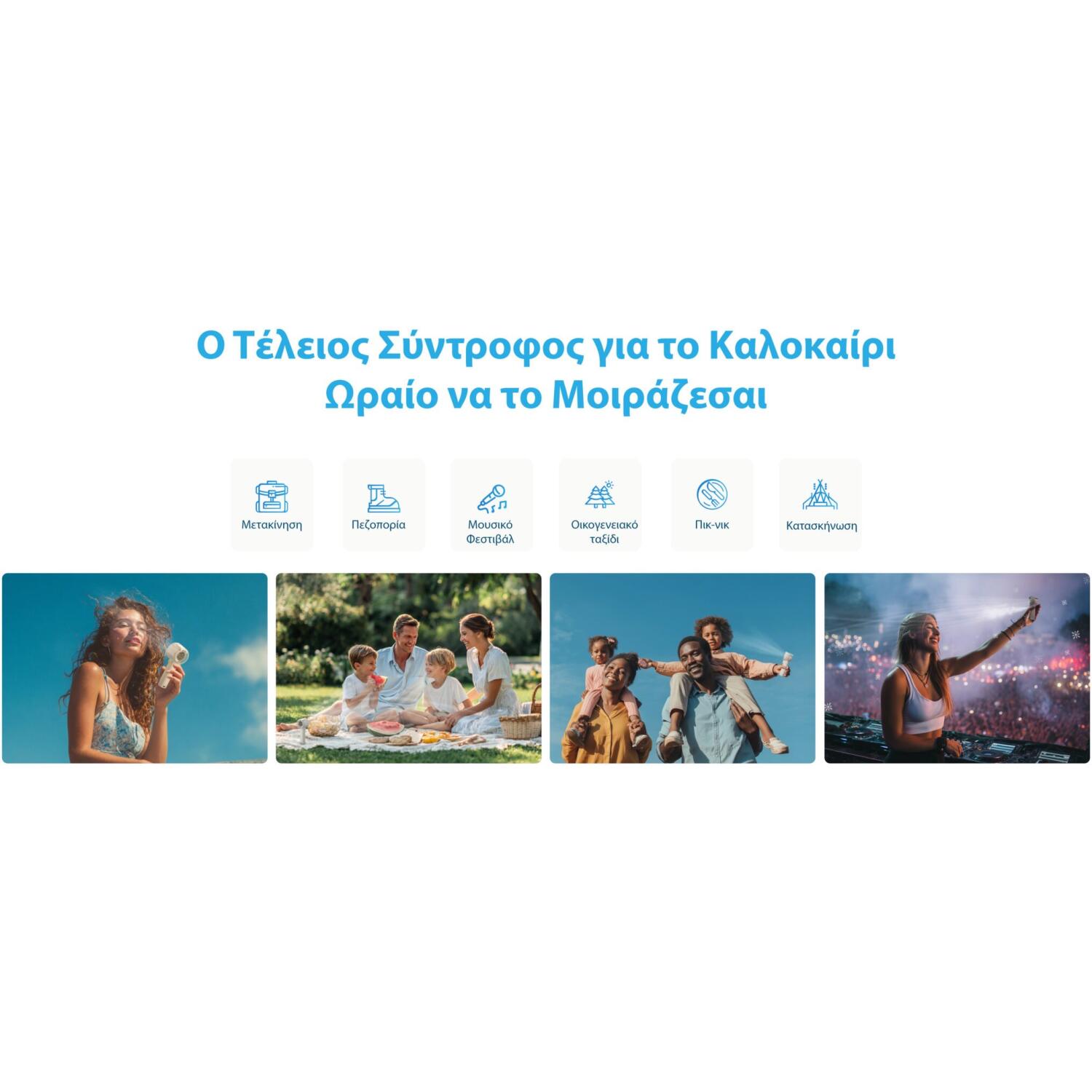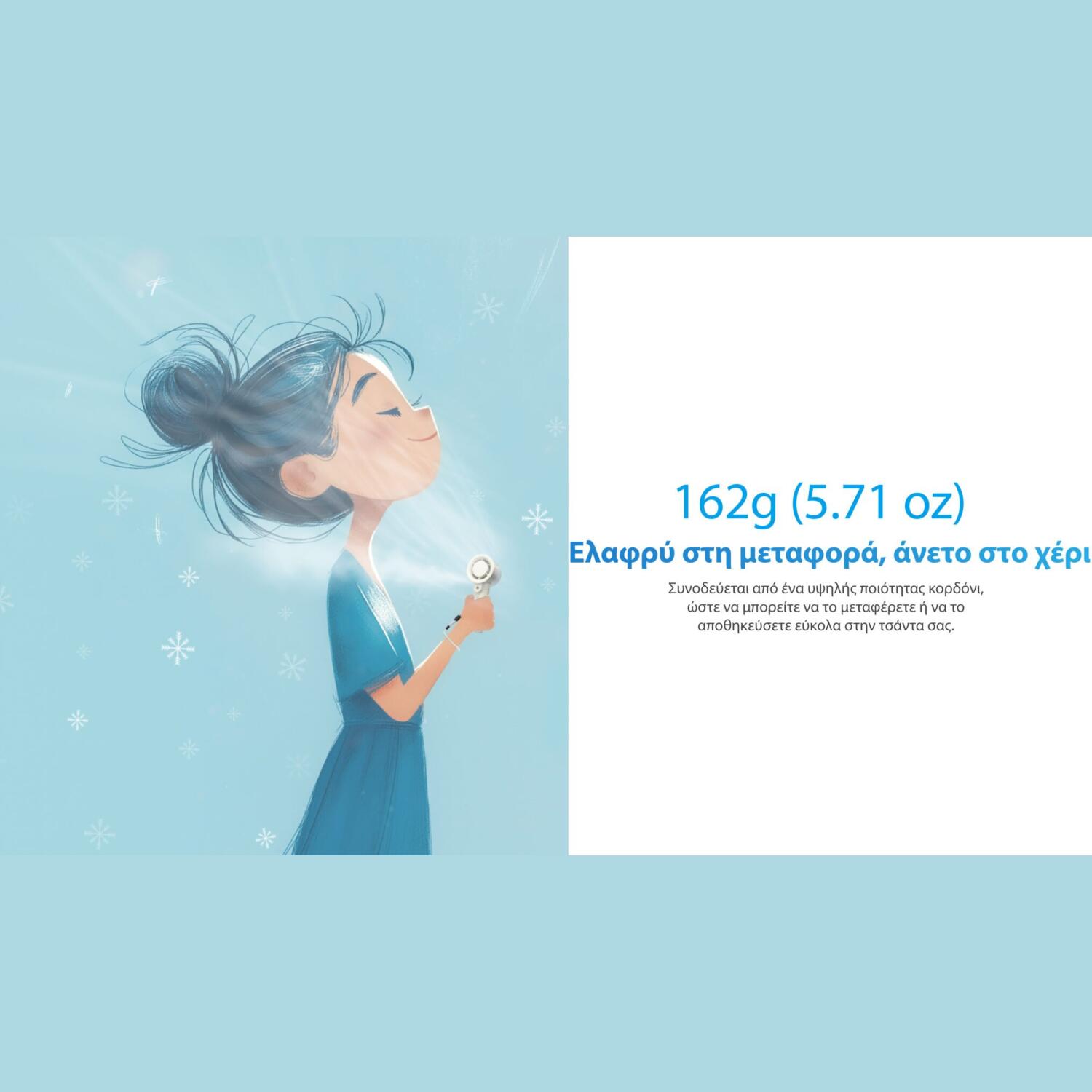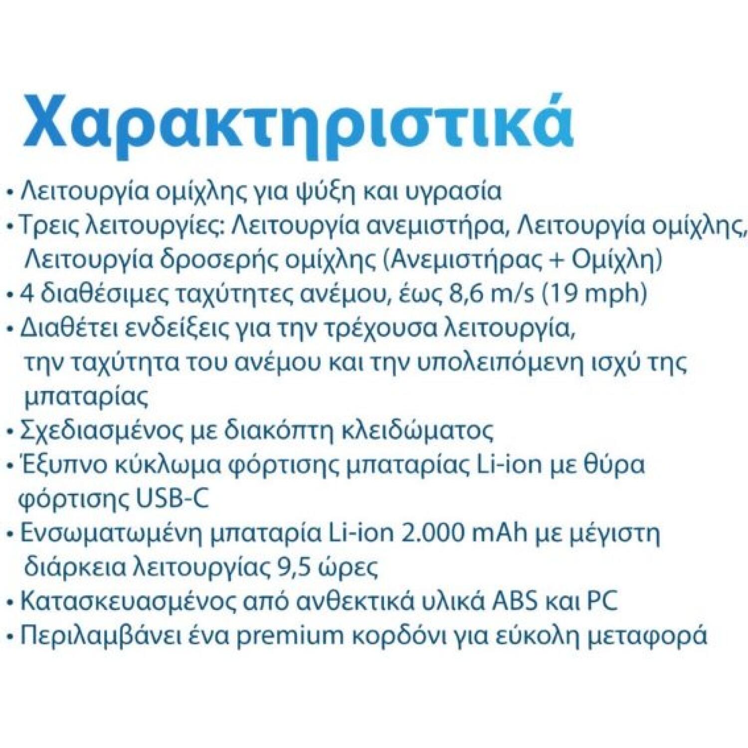 Οι ενδεικτικές λυχνίες, οι λειτουργίες ψύξης, ανεμιστήρα και ομίχλης θα σας προσφέρουν μία μοναδική εμπειρία χρήσης! Είναι εξαιρετικά φορητός, καθώς ζυγίζει μόλις 162 γραμμάρια και είναι ο ιδανικός σύντροφος για ταξίδια, πικνίκ, φεστιβάλ, πεζοπορίες ή απλά για το γραφείο και το σπίτι σας.