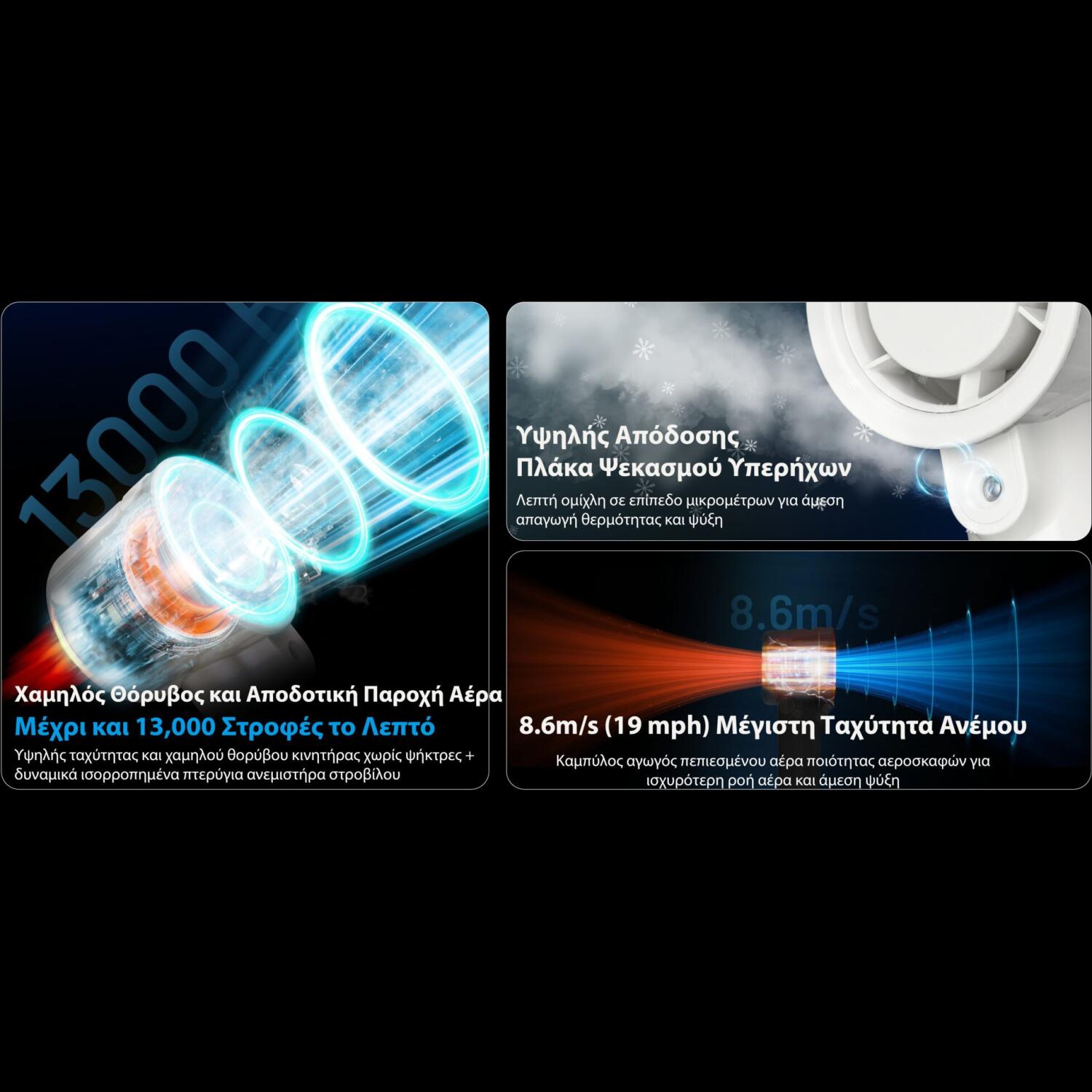 Διαθέτει κυκλικό σχεδιασμό στην δεξαμενή νερού ώστε να ενσωματώνεται τέλεια με τον ανεμιστήρα, ενώ ο υψηλής ταχύτητας κινητήρας χαμηλού θορύβου, προσφέρει αποδοτική ροή αέρα χωρίς ενοχλητικούς ήχους. Επίσης, ρυθμίζεται πολύ εύκολα, εσείς απλά με μια απλή κίνηση των δακτύλων σας μπορείτε να ρυθμίσετε την ταχύτητα του ανέμου!