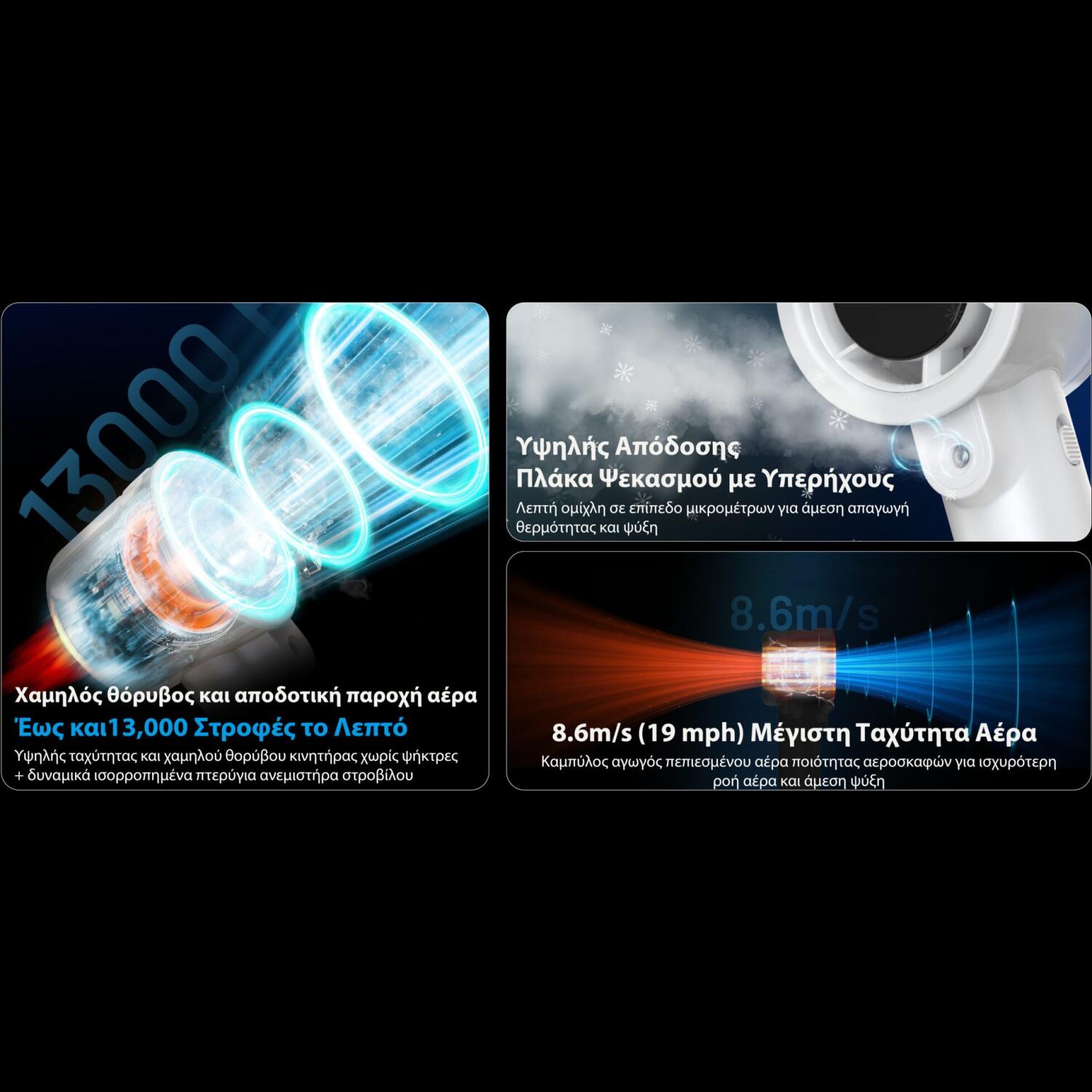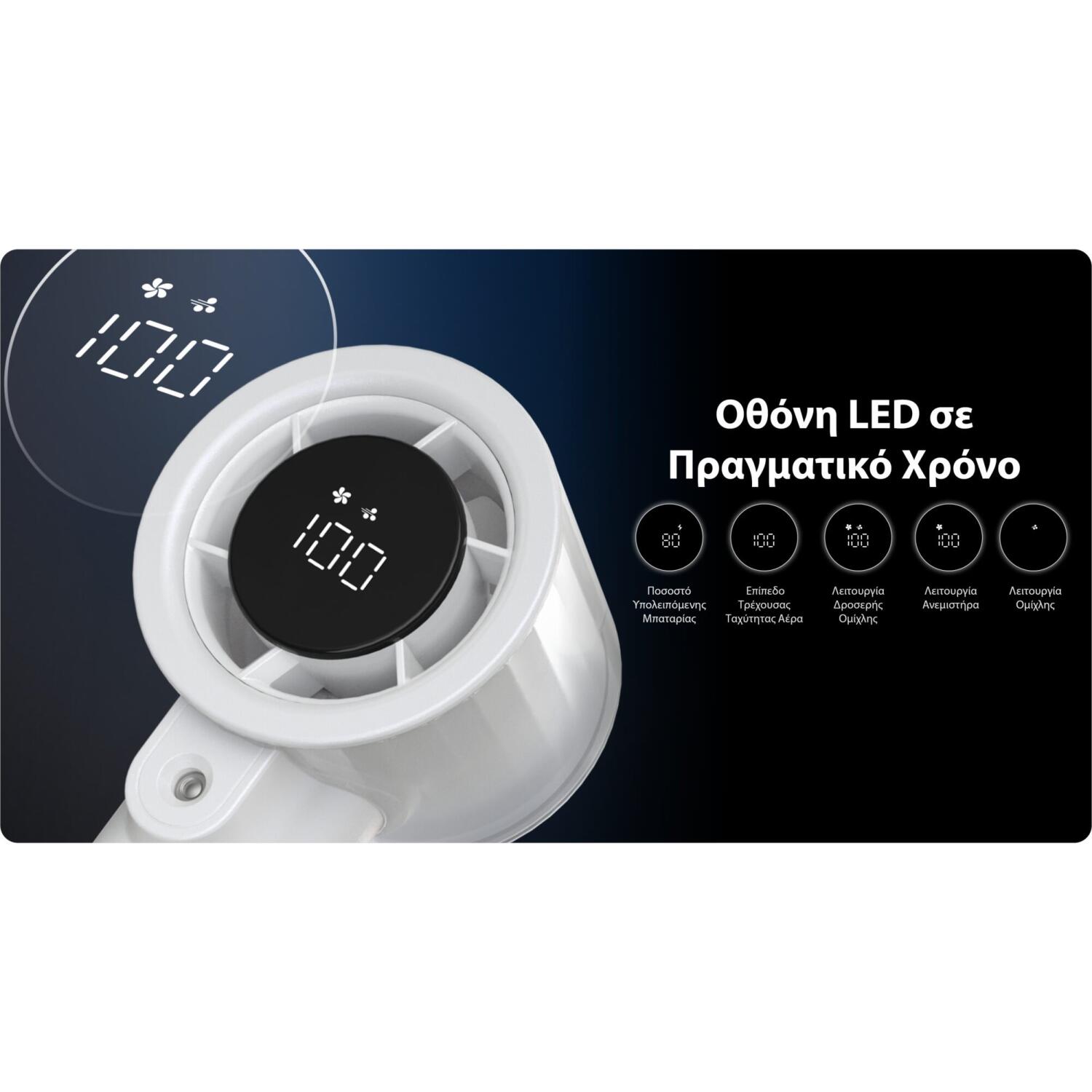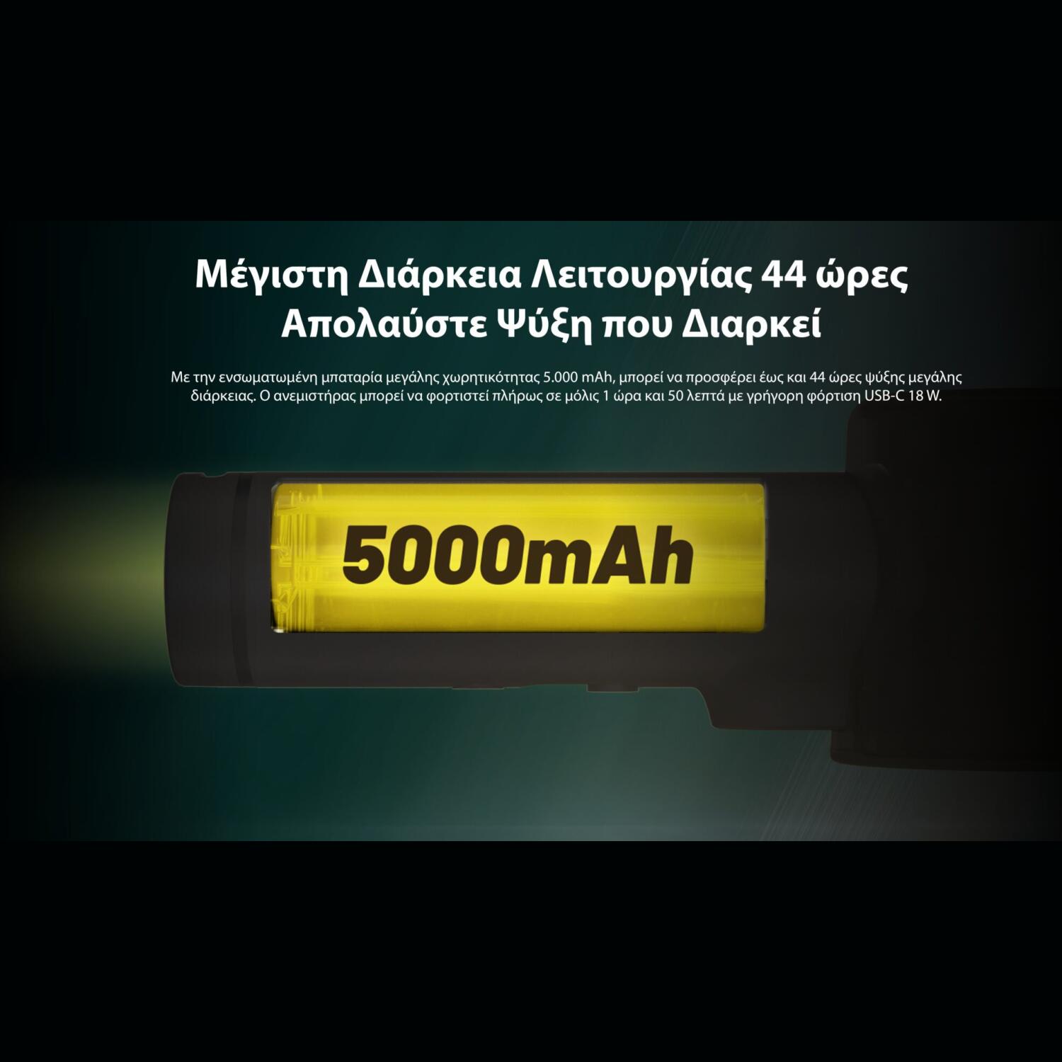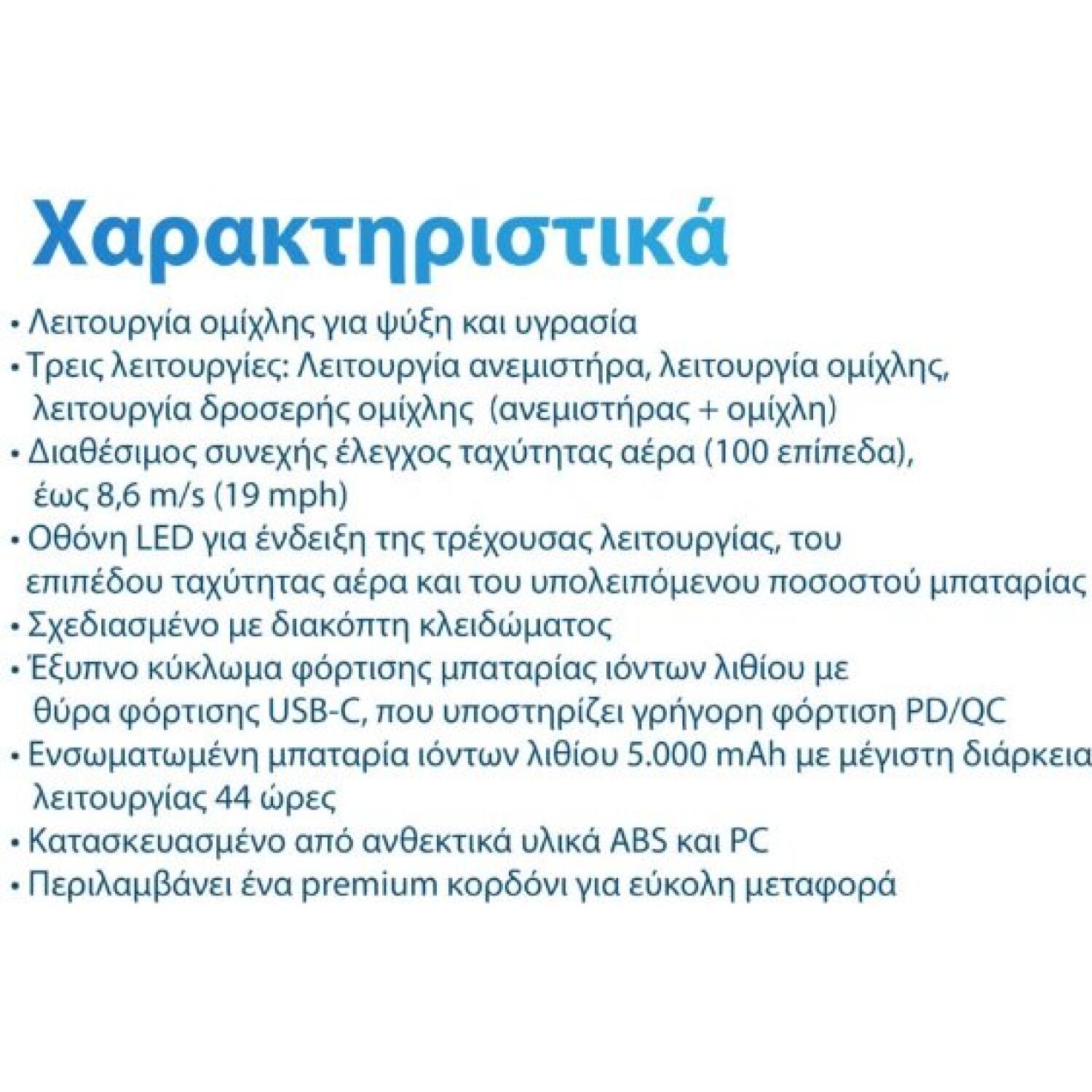 Ο αδιαβάθμητος έλεγχος ταχύτητας, η LED οθόνη, η οποία σας δείχνει σε πραγματικό χρόνο πολλές ενδείξεις και οι λειτουργίες ψύξης, ανεμιστήρα και ομίχλης θα σας προσφέρουν μία μοναδική εμπειρία χρήσης! Είναι εξαιρετικά φορητός, καθώς ζυγίζει μόλις 189 γραμμάρια και είναι ο ιδανικός σύντροφος για ταξίδια, πικνίκ, φεστιβάλ, πεζοπορίες ή απλά για το γραφείο και το σπίτι σας.