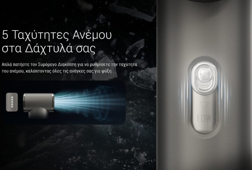 Με βάρος μόλις 166 γραμμάρια, μεταφέρεται και αποθηκεύεται πανεύκολα στην τσάντα σας! Απολαύστε 5 επίπεδα ταχύτητας ανέμου και ρυθμίστε εύκολα την ένταση του αέρα με τον συρόμενο διακόπτη. Διαθέτει εξαιρετική ποιότητα κατασκευής με σώμα από κράμα αλουμινίου, επεξεργασμένο με τεχνολογία ακριβείας CNC και χάραξη με λέιζερ. Σας προσφέρει ένα άνετο κράτημα, έχει κομψό και μοντέρνο σχεδιασμό, ενώ παράλληλα είναι στιβαρό και ανθεκτικό στη φθορα.