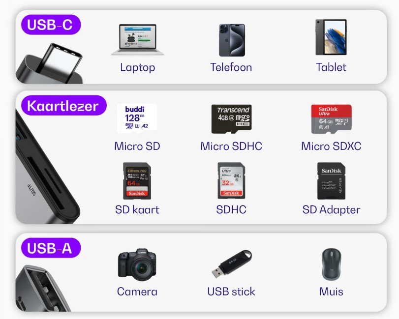 Με το συμπαγές του μέγεθος, είναι εξαιρετικά φορητό και εύκολο στη μεταφορά, έτοιμο να σας συνοδεύσει σε κάθε σας δραστηριότητα χωρίς να καταλαμβάνει πολύ χώρο. Είναι ιδανικός για laptops, smartphones, tablets και άλλες συσκευές Type-C και σας επιτρέπει την εύκολη μεταφορά αρχείων, φωτογραφιών και βίντεο από κάρτες μνήμης SD και MicroSD.