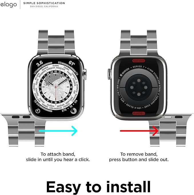 Το υψηλής ποιότητας λουράκι Metal Band της Elago είναι κατασκευασμένο εξ ολοκλήρου από ανοξείδωτο ατσάλι για το αγαπημένο σας Apple Watch SE3/SE2/SE1/11/10/9/8/7/6/5/4 (42/41/40mm) και σχεδιάστηκε για να προσθέσει μία αίσθηση πολυτέλειας στο ρολόι σας!