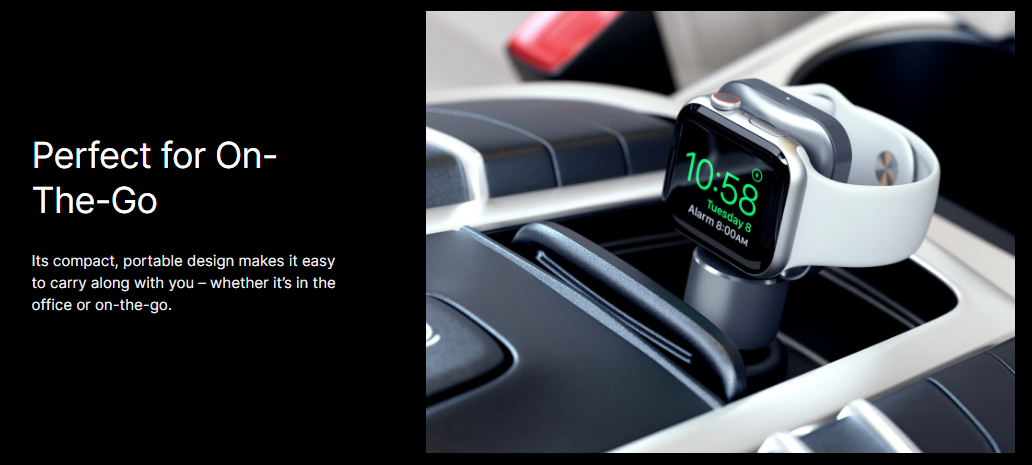 Κατασκευασμένο από αλουμίνιο με μεγάλη αντοχή στην φθορά και ενσωματωμένο μαγνήτη, ο ασύρματος φορτιστής υπόσχεται μία πλήρη και ασφαλή φόρτιση του smartwatch σας. Απλά τοποθετήστε τη σε οπιαδήποτε συσκευή παροχής ενέργειας με υποδοχή Type-C και φορτίστε το Apple Watch σας γρήγορα και άμεσα. Μικρό και κομψό ώστε να μην χρειάζεται πολύ χώρο και να μπορείτε να το έχετε μαζί σας παντού, αλλά παράλληλα απόλυτα εύχρηστο και λειτουργικό.