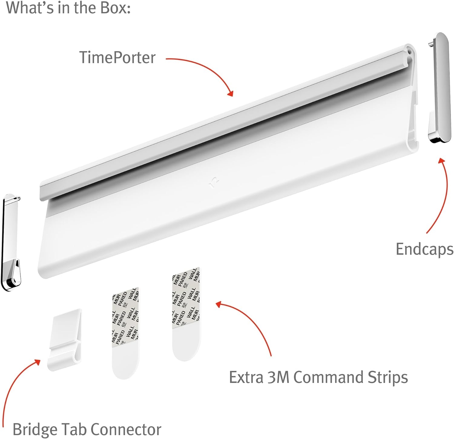 Είναι επίσης κατάλληλο και για επαγγελματίες σε καταστήματα, καθώς μπορείτε να συνδέσετε πολλά TimePorters μεταξύ τους ώστε να προβάλετε τα προϊόντα σας. Επιπλέον, η εύκολη εγκατάσταση με τις περιλαμβανόμενες αυτοκόλλητες ταινίες 3M το καθιστά ιδανικό για την τοποθέτηση σε οποιαδήποτε επιφάνεια χωρίς την ανάγκη να ανοίξετε τρύπες στον τοίχο.