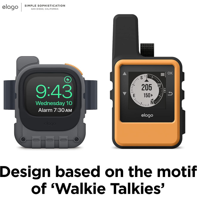 Η Elago σας προσφέρει μια ιδιαίτερη βάση σιλικόνης με retro ύφος, για τον φορτιστή Apple Watch, η οποία θα σας δημιουργήσει ένα αίσθημα νοσταλγίας για το παρελθόν! Αποτελεί μια βάση η οποία θυμίζει ένα Walkie-Talkie και είναι σχεδιασμένη έτσι ώστε η οθόνη του Apple Watch να εφαρμόζει τέλεια. Εσείς απλά τοποθετήσετε το ρολόι και τον φορτιστή στη βάση, προκειμένου να το φορτίσετε.