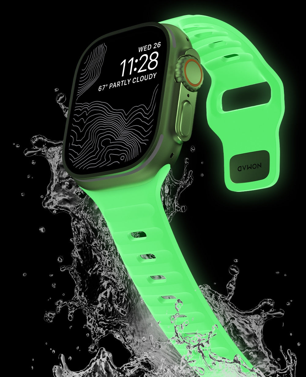 Αναβαθμίστε το αγαπημένο σας Apple Watch Ultra3/Ultra2/Ultra1/SE3/SE2/SE1/11/10/9/8/7/6/5/4 (49/46/45/44mm) με το Limited Edition Sport Band Glow in the Dark της Nomad, ένα κομψό και αθλητικό λουράκι που προσαρμόζεται άψογα από το γραφείο έως και τις περιπέτειές σας στην ύπαιθρο.