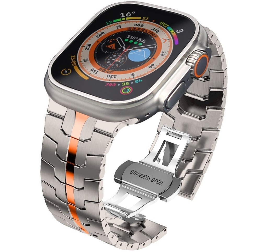 Tech-Protect Stainless Line - Μεταλλικό Λουράκι από Ανοξείδωτο Ατσάλι - Apple Watch Ultra/SE/11/10/9/8/7/6/5/4 (49/46/45/44mm) - Titanium / Orange (5906203697311)