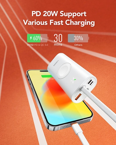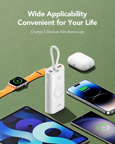Ελέγχει έξυπνα τη θερμότητα και την έξοδο φόρτισης, παρέχοντας σας την καλύτερη εμπειρία φόρτισης. Θα μπορείτε να φορτίζεται το PowerBank από δύο θύρες εισόδου, μία Lightning και μία Type-C. Σας προσφέρει ευρεία συμβατότητα, καθώς είναι συμβατό με όλες τις συσκευές USB-A και Type-C, συμπεριλαμβανομένων των iPhone και τηλέφωνα Samsung, tablet, Nintendo Switch και άλλα και η βάση ασύρματης φόρτισης για τα αγαπημένα σας Apple Watch Series Ultra2/Ultra1/SE/9/8/7/6/5/4/3/2/1.