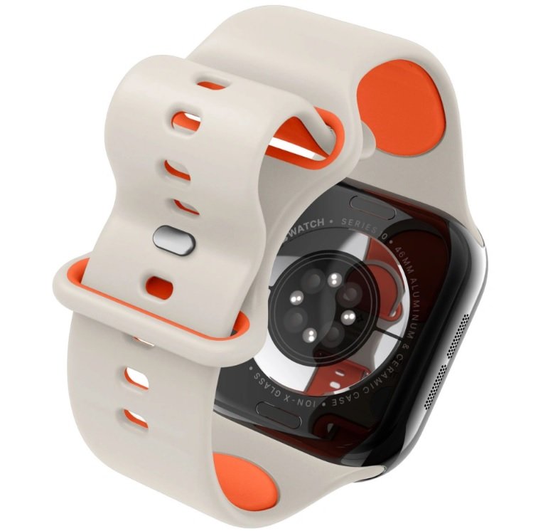 Διαθέτει έναν μοναδικό δίχρωμο σχεδιασμό, που του προσθέτει μία δυναμική εμφάνιση, καθιστώντας το κατάλληλο τόσο για τις σπορ όσο και για τις casual εμφανίσεις σας. Το premium κλείσιμο με καρφίτσα από αλουμίνιο, σας προσφέρει ένα ασφαλές κούμπωμα, διατηρώντας το Apple Watch σας σταθερό στον καρπό σας.