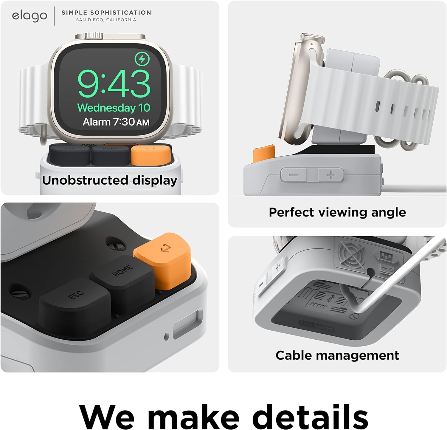 Η Elago σας προσφέρει μια ιδιαίτερη βάση σιλικόνης με retro ύφος, για τον φορτιστή Apple Watch & Samsung Galaxy 5 / 5 Pro, η οποία θα σας δημιουργήσει ένα αίσθημα νοσταλγίας για το παρελθόν! Αποτελεί μια βάση η οποία θυμίζει έναν παλιό υπολογιστή και είναι σχεδιασμένη έτσι ώστε η οθόνη του Apple Watch & Samsung Galaxy 5 / 5 Pro να εφαρμόζει τέλεια. Εσείς απλά τοποθετήσετε το ρολόι και τον φορτιστή στη βάση, προκειμένου να το φορτίσετε.