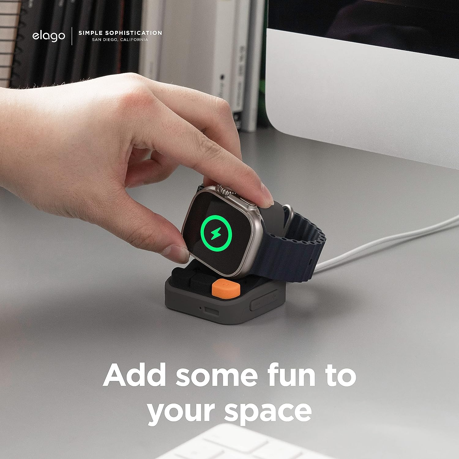Η Elago σας προσφέρει μια ιδιαίτερη βάση σιλικόνης με retro ύφος, για τον φορτιστή Apple Watch & Samsung Galaxy 5 / 5 Pro, η οποία θα σας δημιουργήσει ένα αίσθημα νοσταλγίας για το παρελθόν! Αποτελεί μια βάση η οποία θυμίζει έναν παλιό υπολογιστή και είναι σχεδιασμένη έτσι ώστε η οθόνη του Apple Watch & Samsung Galaxy 5 / 5 Pro να εφαρμόζει τέλεια. Εσείς απλά τοποθετήσετε το ρολόι και τον φορτιστή στη βάση, προκειμένου να το φορτίσετε.