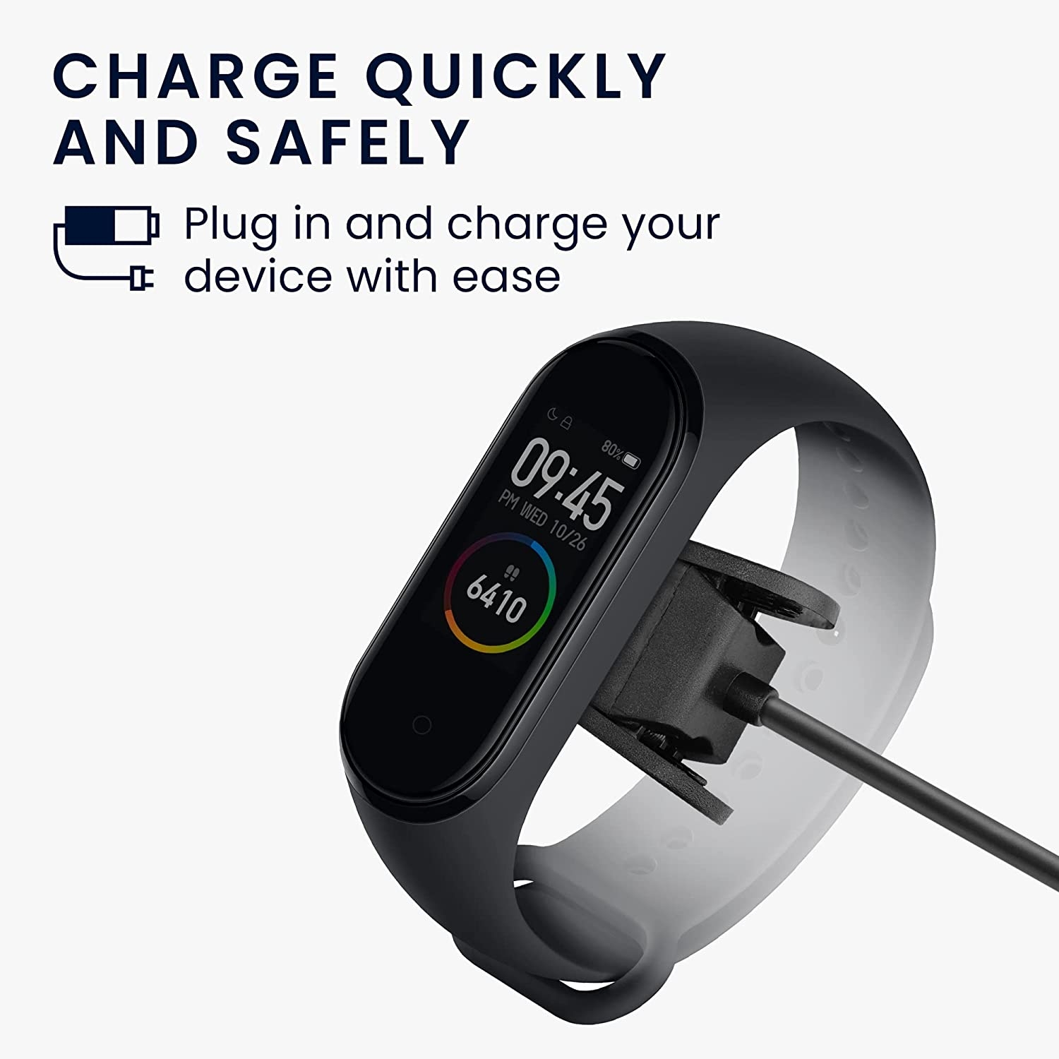 Απλώς συνδέστε το σε μία τυπική θύρα USB, τοποθετήστε το Xiaomi Mi Band 4 στην βάση και είστε έτοιμοι! Το καλώδιο διαθέτει γρήγορη φόρτιση, έτσι ώστε να μπορείτε να το χρησιμοποιήσετε οπουδήποτε και όποτε εσείς θέλετε!