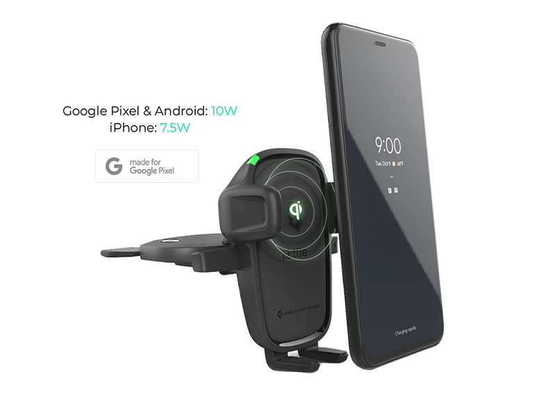 Αυτό το προϊόν έχει πιστοποιηθεί από την Google ότι λειτουργεί με τηλέφωνα Google Pixel συμβατά με Qi, συμπεριλαμβανομένων των Google Pixel 3, 4, 5, 6 και 7. Είναι μια πρακτική λύση που επιτρέπει την ασύρματη φόρτιση του smartphone σας, καθώς και την ασφαλή στήριξη της συσκευής σας, με δυνατότητα τοποθέτησης και αφαίρεσης με το ένα χέρι. Η βάση μπορεί να τοποθετηθεί στη θέση CD ή στον αεραγωγό του αυτοκινήτου σας.