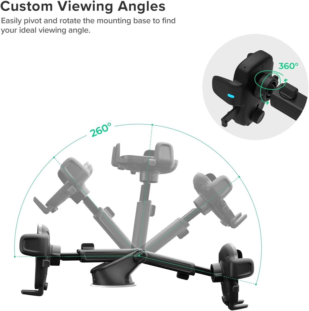 Διαθέτει ένα μοναδικό και μοντέρνο σχεδιασμό, ενώ ταυτόχρονα είναι απόλυτα λειτουργική, βελτιώνοντας σημαντικά την άνεσή σας. Είναι εύκολο να ρυθμιστεί και να προσαρμοστεί, χάρη στην ισχυρή βεντούζα που τοποθετείται στο ταμπλό ή στο παρμπρίζ σας για πρόσθετη ευελιξία. Ο τηλεσκοπικός βραχίονας περιστρέφεται σε τόξο 225° και μπορεί να επεκταθεί από 6,75" σε 11", επιτρέποντάς σας να βρείτε τη βέλτιστη θέση θέασης.