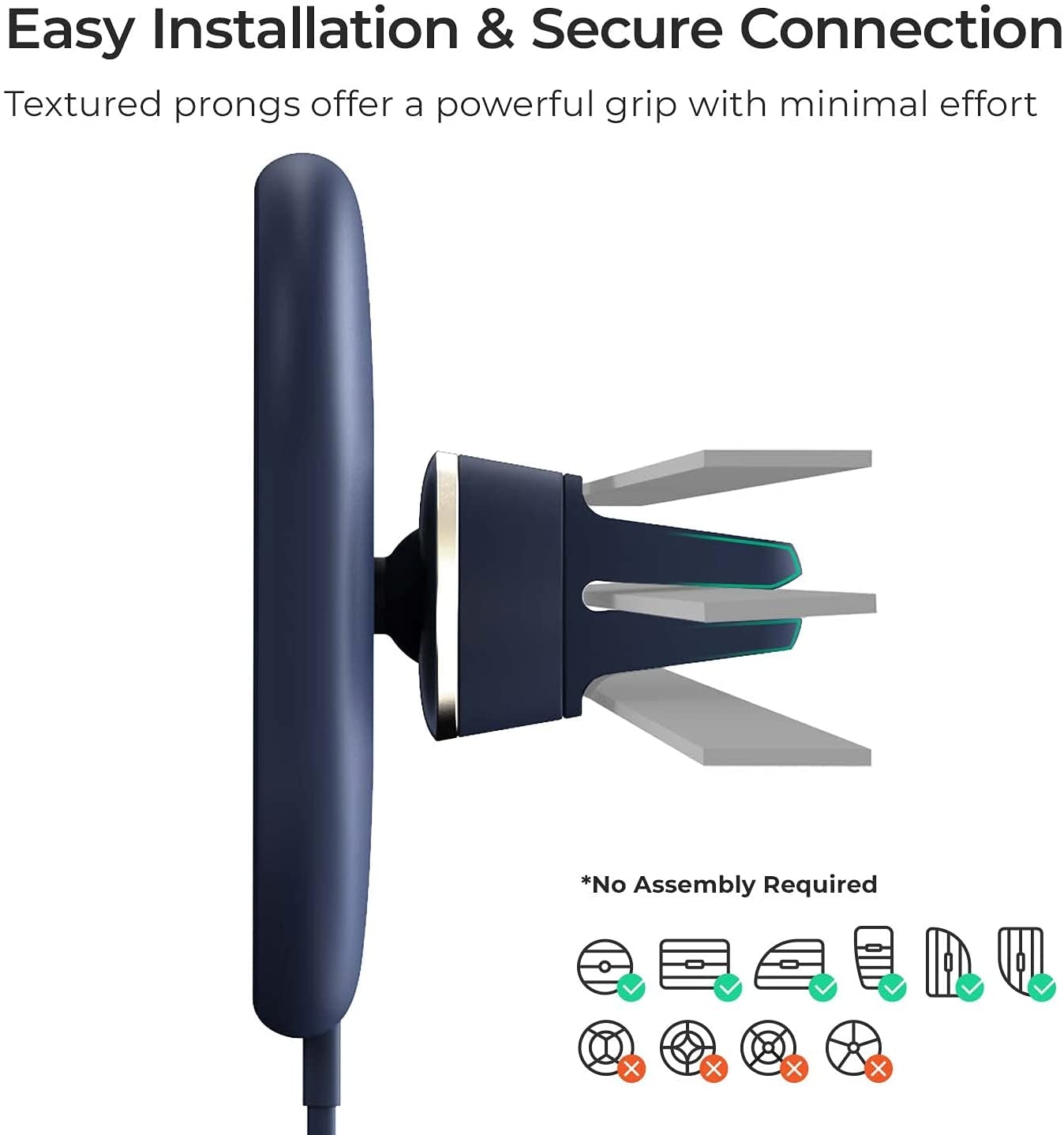 Η βάση ασύρματης φόρτισης για αεραγωγούς αυτοκινήτων Velox Wireless Air Vent Mount της iOttie είναι μια μαγνητική βάση, με ασύρματη γρήγορη φόρτιση για τις σειρές iPhone 14, 13 και iPhone 12 με MagSafe. Απλώς τοποθετήστε τη συσκευή σας στο Velox Mount και θα ευθυγραμμιστεί τέλεια στη θέση της, προσφέροντας έως και 7,5W ασύρματη ισχύ, ενώ ταυτόχρονα η βάση θα προσφέρει ένα ασφαλές κράτημα.