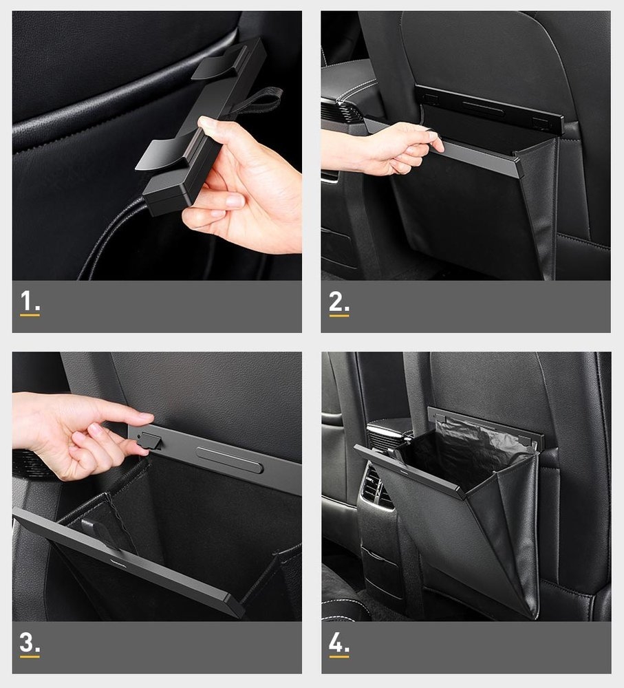 Η κομψή αυτή τσάντα, εκτός από τη διαλογή σκουπιδιών γαι την καθαριότητα του αυτοκινήτου, μπορεί να χρησιμποιηθεί για την αποθήκευση και τακτοποίηση παιχνιδιών, smartphone και tablet, καθώς επίσης και περιοδικών, εφημερίδων και άλλων σημαντικών εγγράφων.