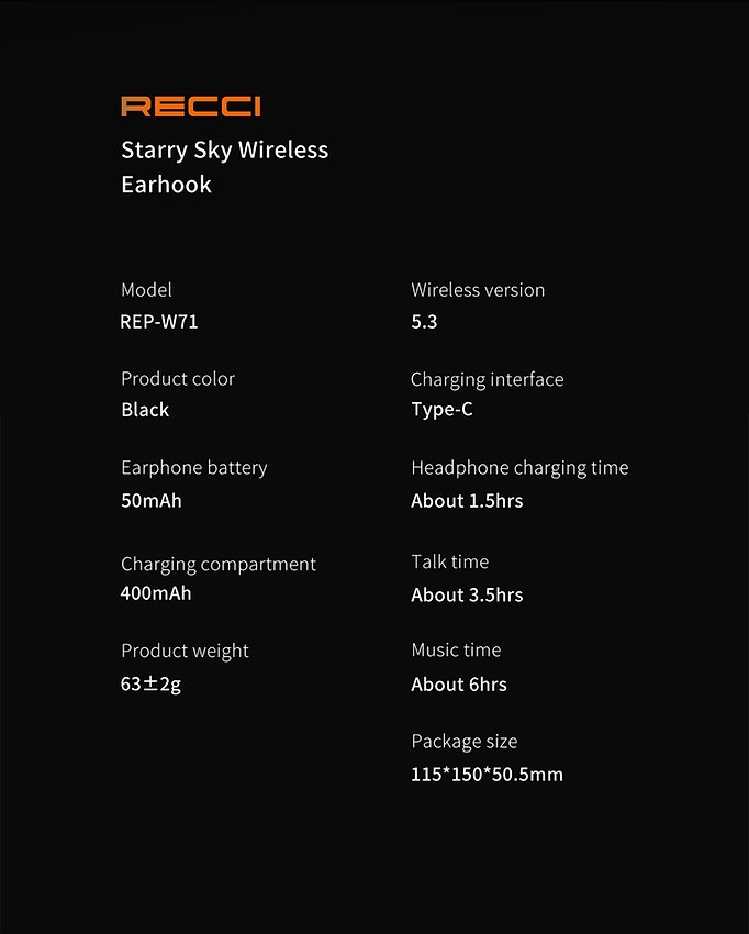 Τα ασύρματα ακουστικά REP-W71 Starry Sky της Recci, σας προσφέρουν την καλύτερη ακουστική εμπειρία, χάρη στην υψηλότερη ποιότητα ήχου HI-FI, που θα σας μεταφέρει σε έναν κόσμο μοναδικής μουσικής απόλαυσης.