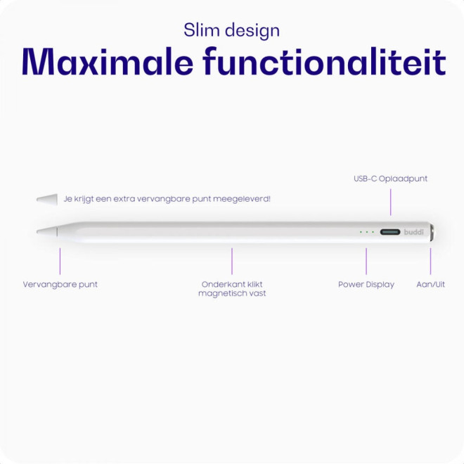 Σχεδιάστε σαν επαγγελματίας στο αγαπημένο σας iPad με την ψηφιακή γραφίδα Wave της Buddi! Είναι κατασκευασμένη με εξαιρετικά λεπτή μύτη και διαθέτει εξαιρετική ευαισθησία στην κλίση! Διαθέτει λειτουργία Palm Rejection, η οποία σας επιτρέπει να ακουμπάτε την παλάμη σας στην οθόνη σας χωρίς να επηρεάζεται το σχέδιό σας!