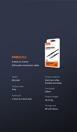 Αφεθείτε στην απόλυτη εμπειρία ήχου με τον καλώδιο RDS-A28 της Recci, ένα εξαιρετικά αξιόπιστο αξεσουάρ που συνδυάζει την υψηλή ποιότητα κατασκευής με την απρόσκοπτη λειτουργία. Κατασκευασμένο από ενισχυμένο braided καλώδιο και υλικά TPE και αλουμίνιο, θα σας προσφέρει μακροχρόνια χρήση.