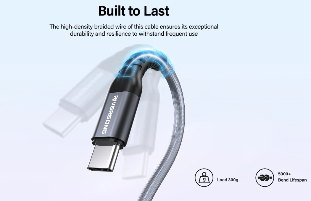 Κατασκευασμένο από υψηλής ποιότητας υλικά και υψηλής πυκνότητας πλέξη που το καθιστούν άκρως ανθεκτικό και ευλύγιστο για εξαιρετική αντοχή στο χρόνο και σε τυχόν υψηλές θερμοκρασίες, ενώ οι άκρες του είναι κατασκευασμένες από αλουμίνιο υψηλής ποιότητας για εξαιρετική αντοχή. Επιλέξτε το καλώδιο Hercules C6 της Riversong για να απολαμβάνετε την καλύτερη δυνατή εμπειρία φόρτισης και μεταφοράς δεδομένων!