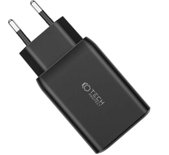 Ο Universal φορτιστής τοίχου C65W της Tech-Protect σας επιτρέπει να φορτίζετε γρήγορα και με ασφάλεια τις συσκευές σας, όπως τα αγαπημένα σας smartphone, φορητές κονσόλες, power banks και tablet. Είναι εξοπλισμένος με τρεις θύρες φόρτισης, δύο Type-C, PD65W και μία USB-A, QC3.0.