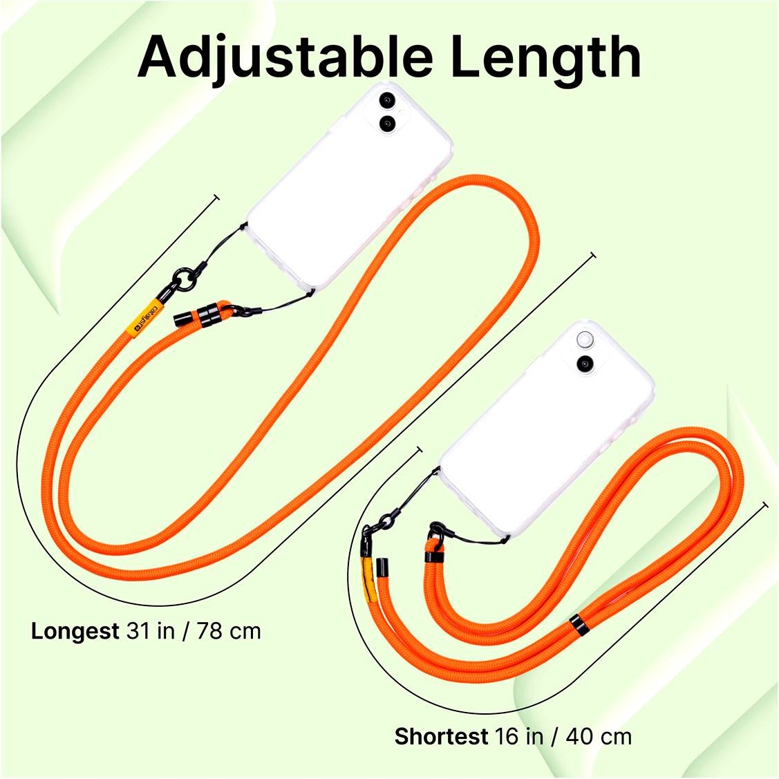 Το πάχος του είναι 8mm, μπορείτε να ρυθμίσετε το μήκος του από 40cm έως 80cm και να το φορέσετε όπως σας βολεύει, γύρω από το λαιμό ή τον ώμο σας. Προσφέρει εύκολη πρόσβαση στο τηλέφωνό σας και ασφαλή μεταφορά, εξασφαλίζοντας ότι το τηλέφωνό σας είναι πάντα κοντά σας.