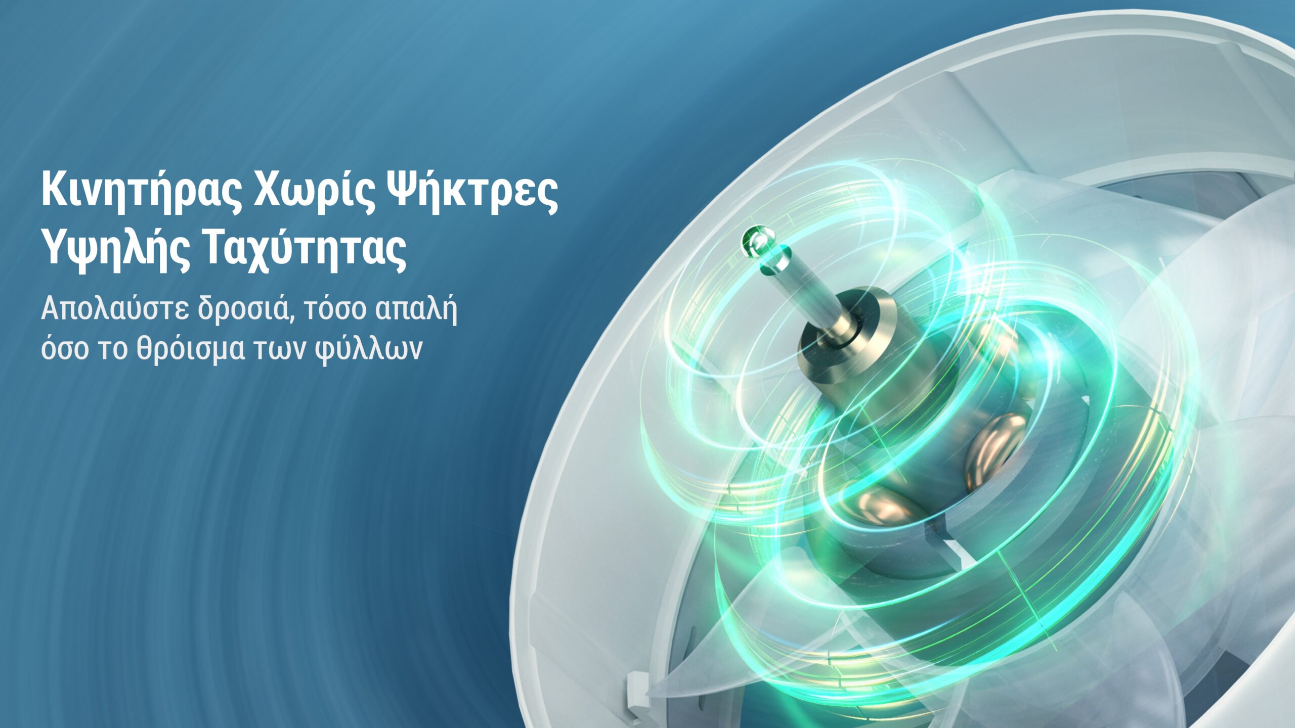 Είναι σχεδιασμένο με κινητήρα χωρίς ψήκτρες, προσφέροντας αθόρυβη και σταθερή λειτουργία. Με 5 ταχύτητες ανέμου, μπορείτε να ρυθμίστε ελεύθερα την ένταση, από ένα διακριτικό, απαλό αεράκι έως έναν ισχυρό άνεμο, ιδανικό για κάθε στιγμή και ανάγκη σας. Η οθόνη LED άμεσων πληροφοριών, εμφανίζει το τρέχον επίπεδο ταχύτητας ανέμου, λειτουργία δροσερής ομίχλης, ανεμιστήρα, ομίχλης και το ποσοστό της υπολειπόμενης μπαταρίας, προσφέροντας σας άμεση ενημέρωση.