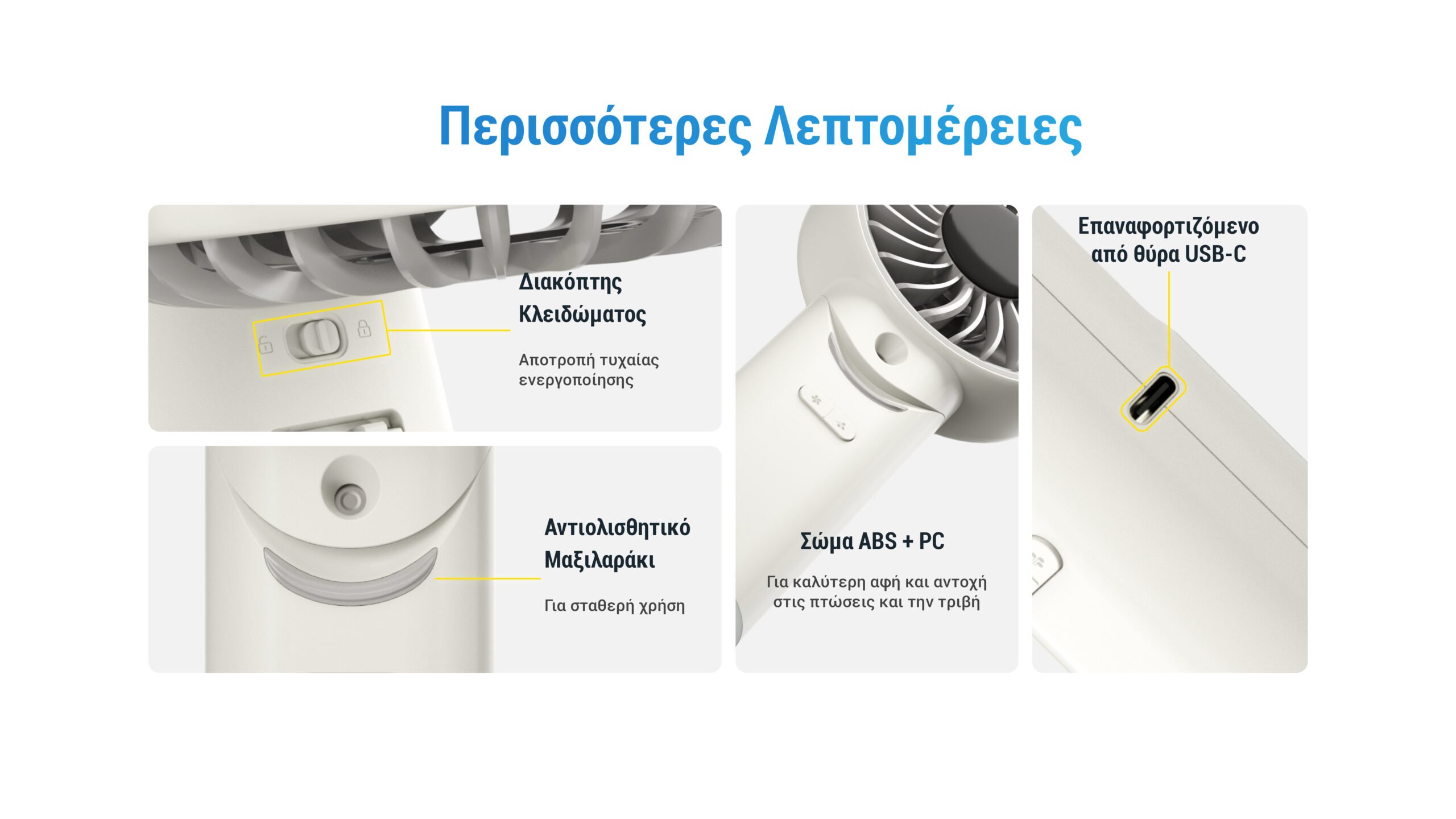 Ζυγίζει μόλις 232 γραμμάρια, διαθέτοντας έναν κομψό και ελαφρύ σχεδιασμό που το καθιστά ιδανικό για εύκολη μεταφορά και άνετη αποθήκευση στην τσάντα σας. Επίσης, διαθέτει διακόπτη κλειδώματος για αποτροπή τυχαίας ενεργοποίησης. Το σώμα είναι κατασκευασμένο από υψηλής ποιότητας υλικά ABS και PC, προσφέροντας εξαιρετική αίσθηση αφής και αυξημένη αντοχή στις πτώσεις και την τριβή, ενώ το αντιολισθητικό μαξιλαράκι που διαθέτει εγγυάται τη σταθερή και ασφαλή λειτουργία.