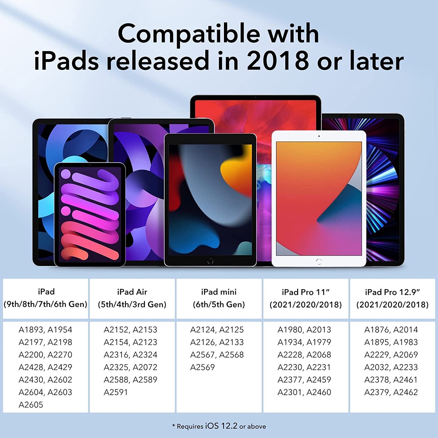 Σημείωση: Δεν είναι συμβατό με το iPad mini 7 2024. Είναι συμβατή μέ όλα τα μοντέλα iPad της Apple από το 2018 με ενημέρωση από iOS 12.2 ή μεταγενέστερη έκδοση. Υποστηρίζει μαγνητική προσάρτηση μόνο με τα iPad Pro 12,9” (2021/2020/2018) / 11”, iPad Air 5/4 και iPad mini 6. (Δεν είναι συμβατό με το iPad mini 7 2024). Δεν υποστηρίζει ασύρματη φόρτιση. Δεν υποστηρίζει ευαισθησία πίεσης. Αποσυνδέστε το Apple Pencil πριν χρησιμοποιήσετε την γραφίδα της ESR. Φορτίστε πλήρως πριν από την πρώτη χρήση. Λειτουργεί καλύτερα με ένα προστατευτικό οθόνης από σκληρυμένο γυαλί.