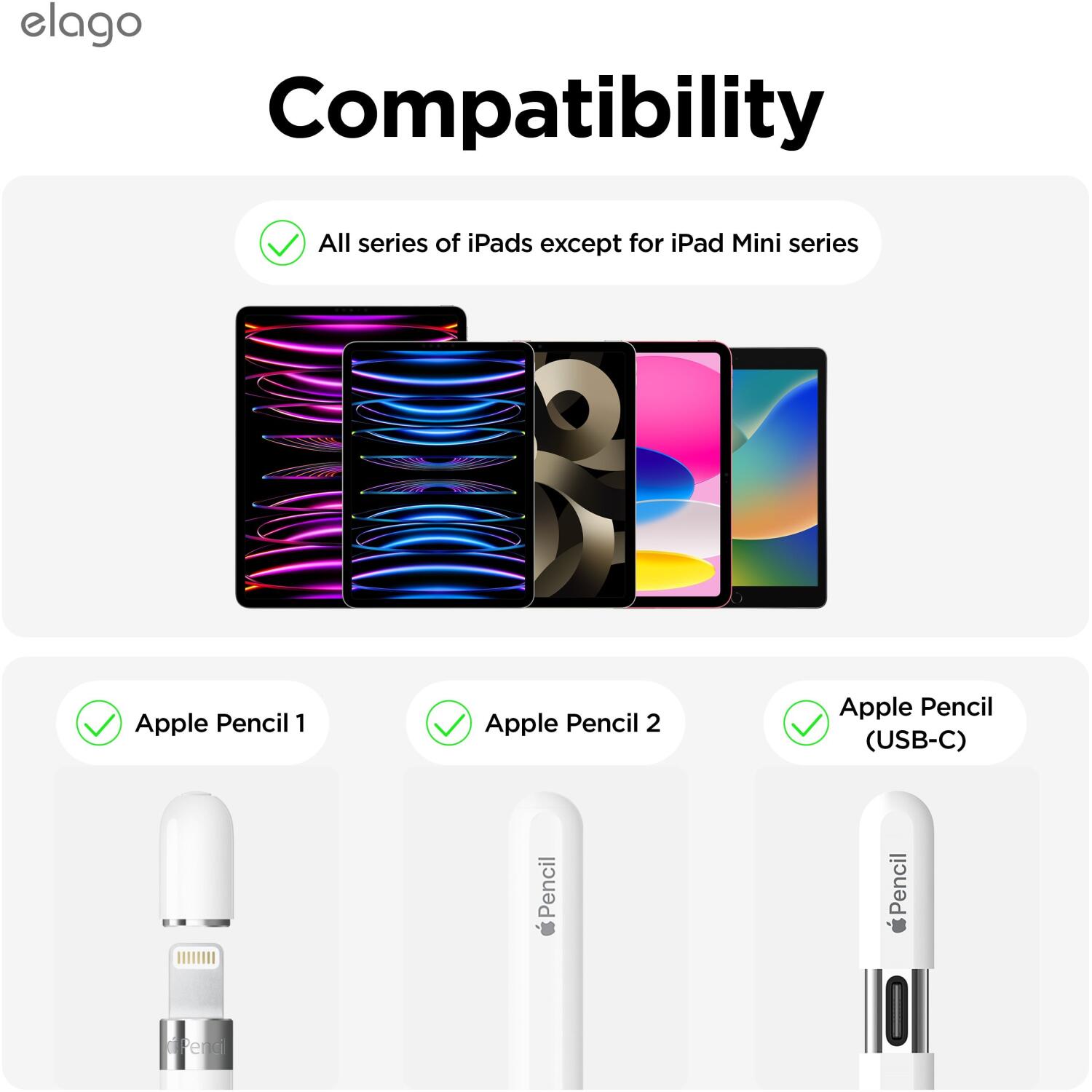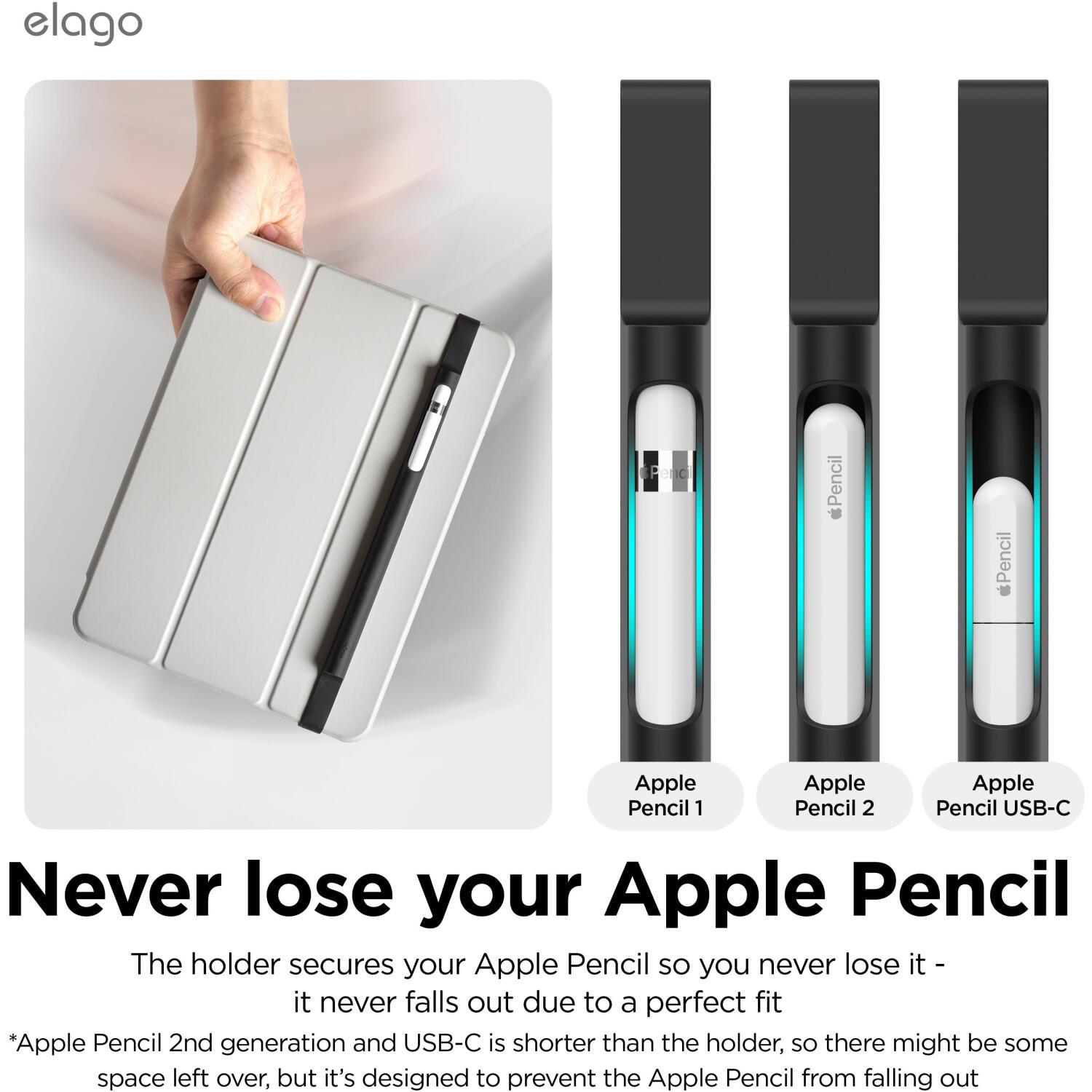 Σημείωση: Το Apple Pencil δεν περιλαμβάνεται. Δεν περιλαμβάνεται κάποια θήκη για το iPad. Δεν είναι συμβατό με τα iPad Mini. Δεν μπορεί να χρησιμοποιηθεί αν έχετε ήδη κάποια θήκη στο Apple Pencil σας. Είναι συμβατή μόνο με θήκες τύπου Folio, που δεν καλύπτουν το Apple Pencil. Τα Apple Pencil 2ης γενιάς και USB-C είναι ελαφρώς πιο κοντά από τη θήκη, με αποτέλεσμα να περισσεύει λίγος χώρος. Ωστόσο, η θήκη είναι σχεδιασμένη έτσι ώστε να κρατά σταθερά το Apple Pencil και να αποτρέπει την πτώση του.