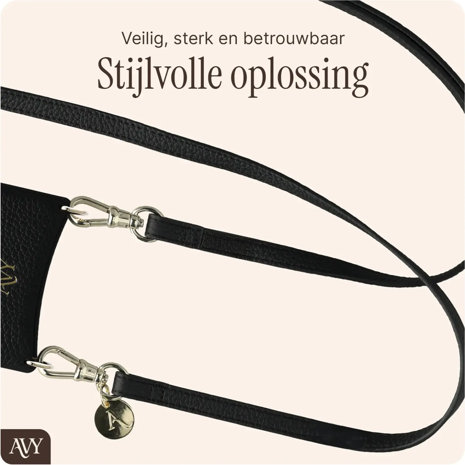Αναβαθμίστε την εμφάνισή σας και κρατήστε το τηλέφωνό σας πάντα ασφαλές και κοντά σας με το δερμάτινο λουράκι λαιμού Leather Crossbody Strap της AVY! Με αυτό το υπέροχο κόσμημα-αξεσουάρ, το τηλέφωνό σας είναι πάντα στα χέρια σας, είτε κρέμεται στο λαιμό είτε στον ώμο σας, ανακουφίζοντας σας από το βάρος στο χέρι ή την τσέπη σας.