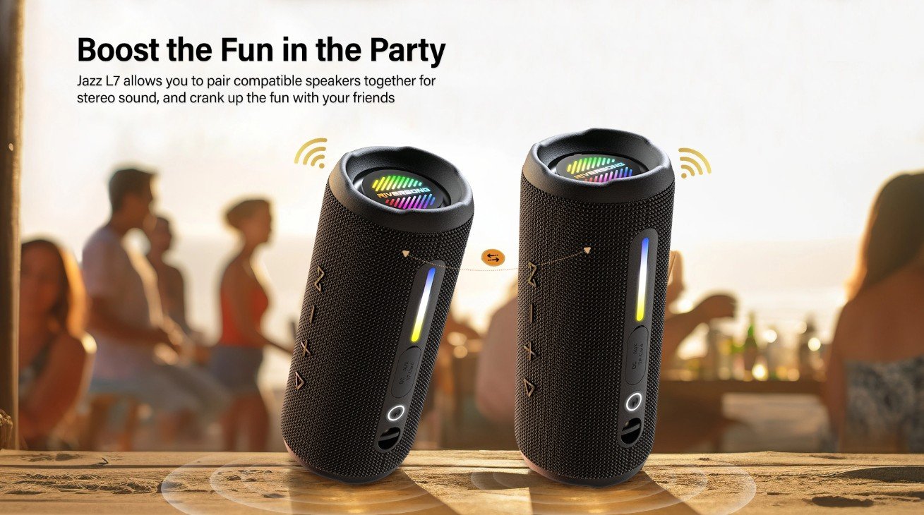 Το Jazz L7 Bluetooth Speaker της Riversong είναι ένα ασύρματο Bluetooth ηχείο με υψηλή απόδοση, κομψό design και ανθεκτικότητα. Με καθαρό, δυναμικό ήχο 360°, ενισχυμένα μπάσα και φωτισμό που "χορεύει" στον ρυθμό της μουσικής, το Jazz L7 είναι κατάλληλο για κάθε στιγμή, από μια ήσυχη βραδιά στο σπίτι μέχρι το πιο ξέφρενο pool party.