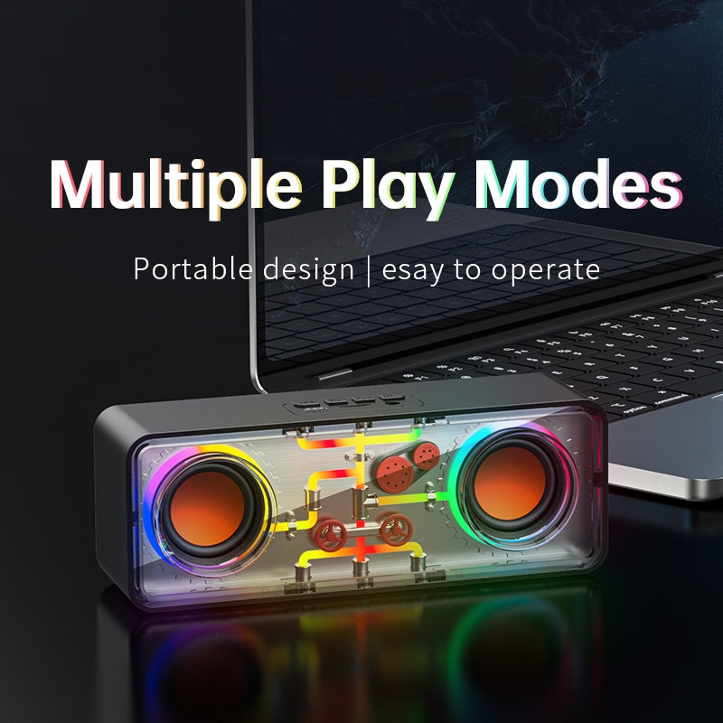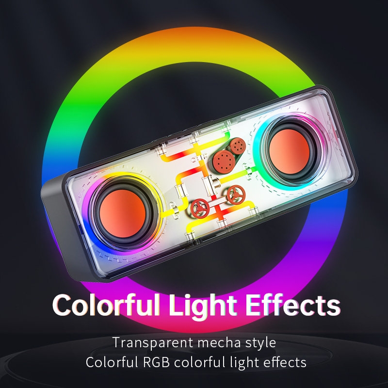 Τα εκθαμβωτικά πολύχρωμα εφέ φωτισμού RGB αντιδρούν στον ρυθμό της μουσικής, προσθέτοντας μια οπτική διάσταση που ενισχύει την ενέργεια της μουσικής και δημιουργεί μια μαγευτική ατμόσφαιρα. Με τον διπλό σχεδιασμό ηχείων, προσφέρει εκπληκτικά στερεοφωνικά ηχητικά εφέ, αφήνοντάς σας να αισθανθείτε κάθε layer και κάθε πτυχή της μουσικής σαν να είστε μέσα σε ένα συναρπαστικό λάιβ.