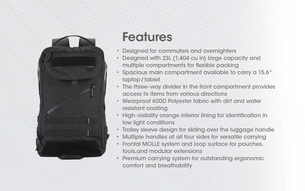 Η τσάντα πλάτης BP23 της Nitecore είναι ένα πολυ-χρηστικό ανθεκτικό σακίδιο, το οποίο είναι ιδανικό για τις καθημερινές σας μετακινήσεις, προσφέροντάς σας μεγάλο αποθηκευτικό χώρο 23 λίτρων και πολλαπλές θήκες, ταυτόχρονα αποτελεί την καλύτερη επιλογή για τις εξορμήσεις σας!