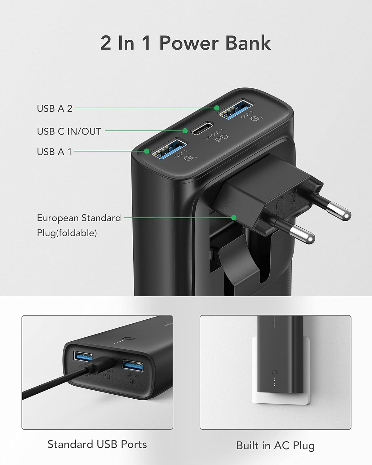 Επαναφορτίζετε το PowerBank με δύο τρόπους, μέσω του βύσματος AC σε 6 ώρες ή μέσω εισόδου Type-C για γρήγορη επαναφόρτιση σε 3.5 ώρες. Μεταφέρεται εύκολα και μπορεί να φορτιστεί παντού καθιστώντας το ιδιαίτερα χρήσιμο για ταξίδια, εξωτερικές δραστηριότητες η οπουδήποτε αλλού υπάρξει ανάγκη.