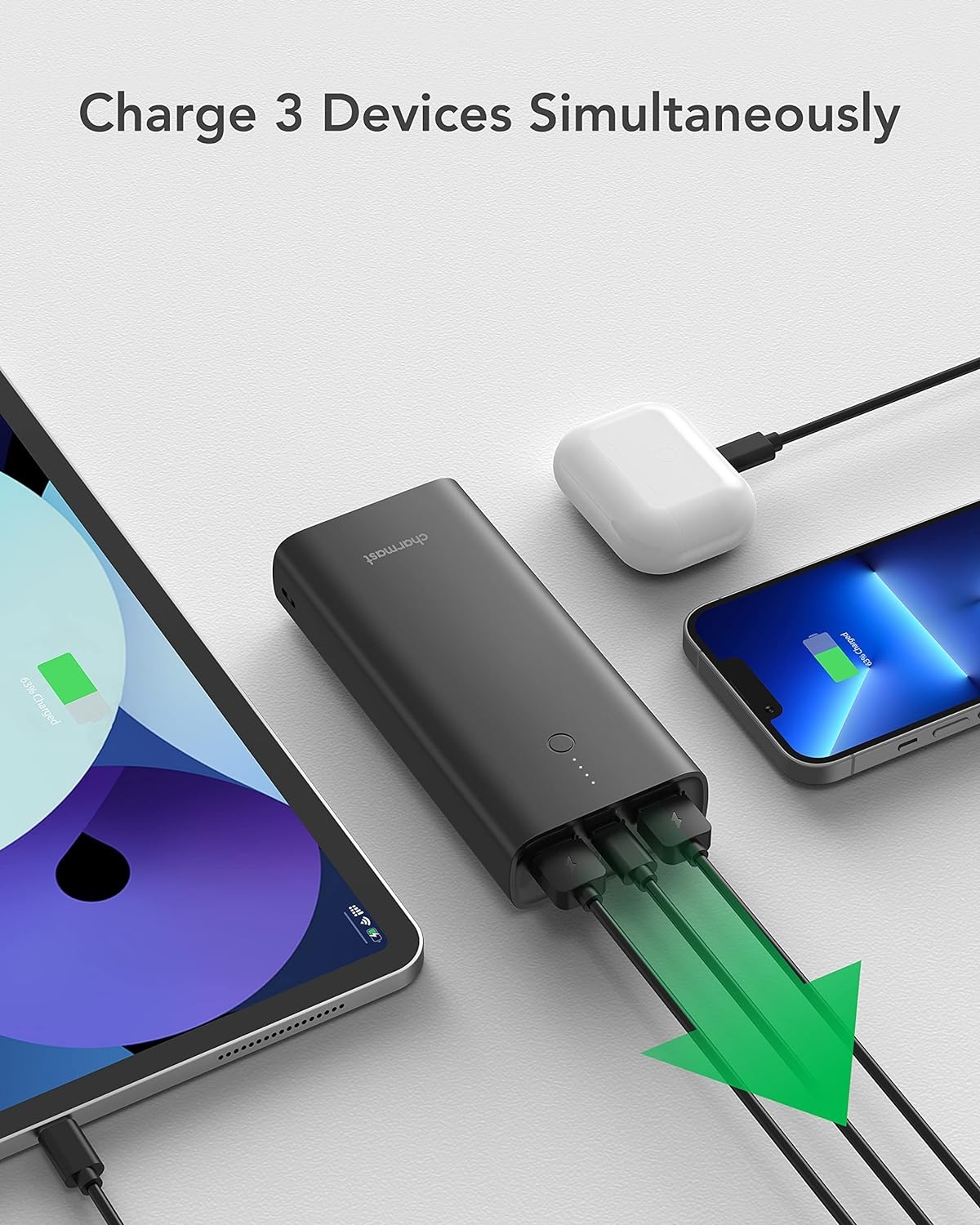 Τέλος, μπορείτε να φορτίσετε 3 συσκευές ταυτόχρονα, η φορητή μπαταρία φόρτισης 10.000 mAh είναι εξαιρετικά συμβατή με τις περισσότερες συσκευές, συμπεριλαμβανομένων των smartphone, του iPad και των tablet, ακόμη και με smartwatch ή ακουστικά.
