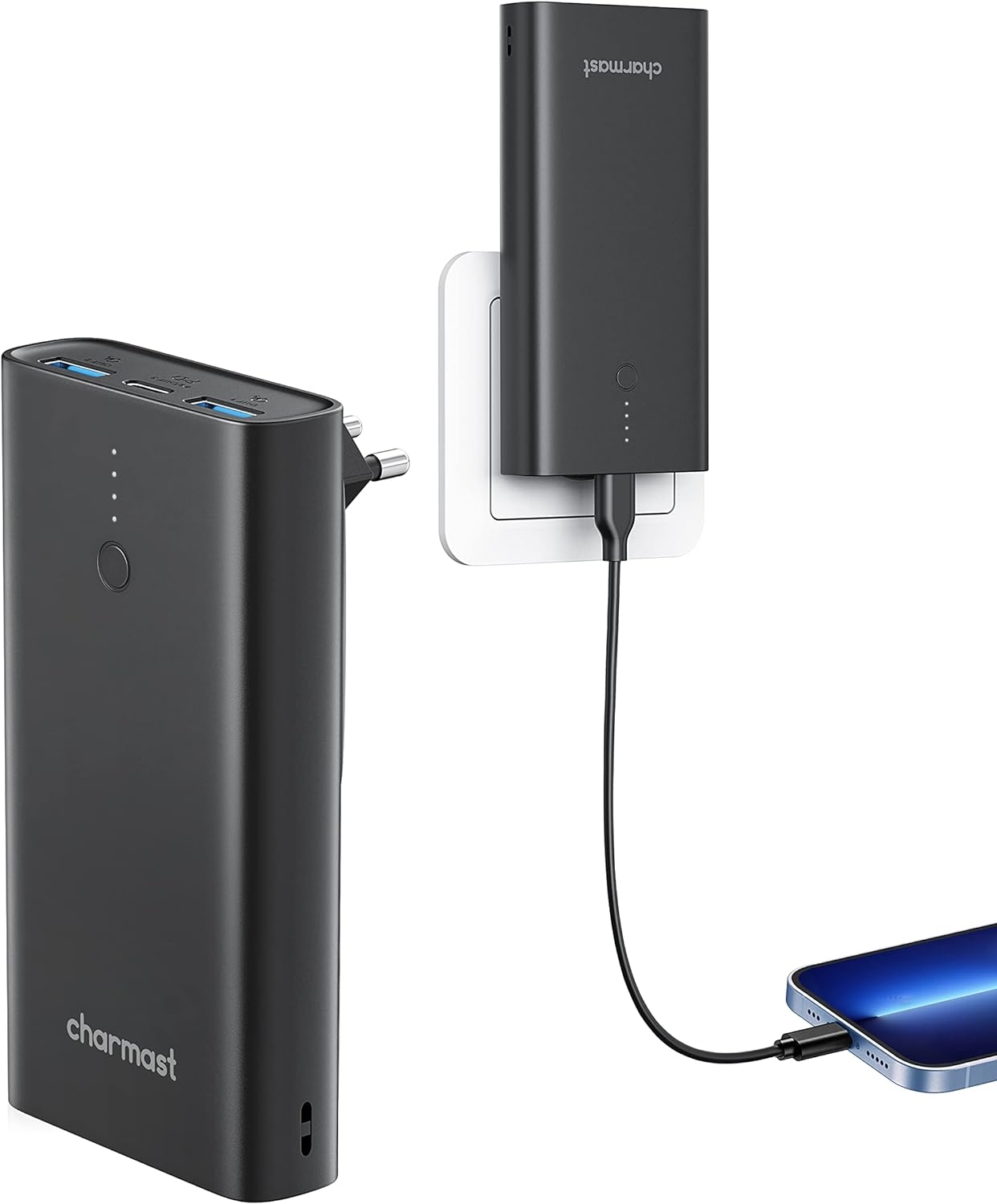 Το PowerBank & Wall Adapter C1146L της Charmast, είναι το πρώτο PowerBank παγκοσμίως που μετατρέπεται σε φορτιστή τοίχου χάρη στο πτυσσόμενο βύσμα ευρωπαϊκού τύπου. Ζυγίζει μόνο 218 γραμμάρια, που είναι σχεδόν το ίδιο βάρος με τα κοινά powerbanks.