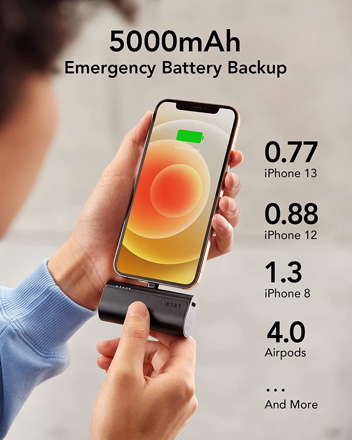 Είναι εξαιρετικά συμπαγές και ελαφρύ, με υψηλή χωρητικότητα 5000mAh και με ένα μίνι σώμα! Το βάρος του είναι περίπου 92 γραμμάρια και το μήκος λιγότερο από 8 εκατοστά. Είναι ένα μικροσκοπικό PowerBank, το οποίο χωράει στην τσάντα ή την τσέπη σας χωρίς να προσθέτει βάρος. Ιδανικό για να καλύψει την καθημερινή σας χρήση.
