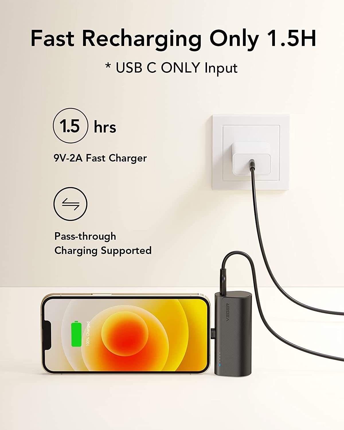 Σας προσφέρει εξαιρετικά γρήγορη φόρτιση, καθώς ο μίνι φορτιστής μπορεί να φορτίσει το iPhone 13 έως 60% σε 30 λεπτά με ισχύ έως 20W. Επαναφορτίζεται επίσης πλήρως, σε 1.5 ώρα μέσω της θύρας εισόδου Type-C, ενώ όταν δεν το χρησιμοποιείτε, απλώς προστατεύετε το βύσμα Lightning με το παρεχόμενο καπάκι.