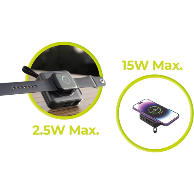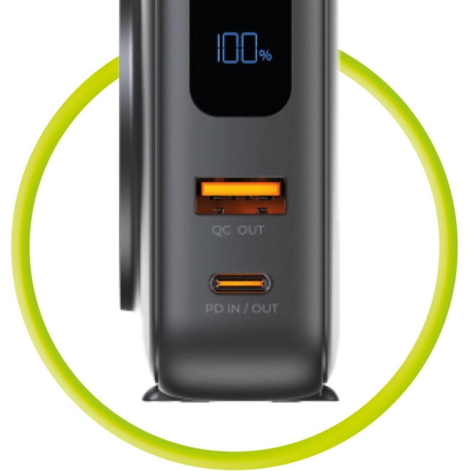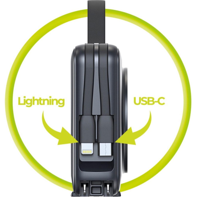 Διαθέτει δύο εισόδους και έτσι μπορείτε να φορτίσετε με δύο τρόπους το PowerBank, μέσω του βύσματος τοίχου και μέσω της θύρας Type-C. Επίσης, σας προσφέρει 5 εξόδους, ώστε να φορτίσετε τις συσκευές σας, μέσω της θύρας USB-A και Type-C, μέσω των καλωδίων εξόδου, Type-C και Lightning και φυσικά μέσω της ασύρματης φόρτισης MagSafe.