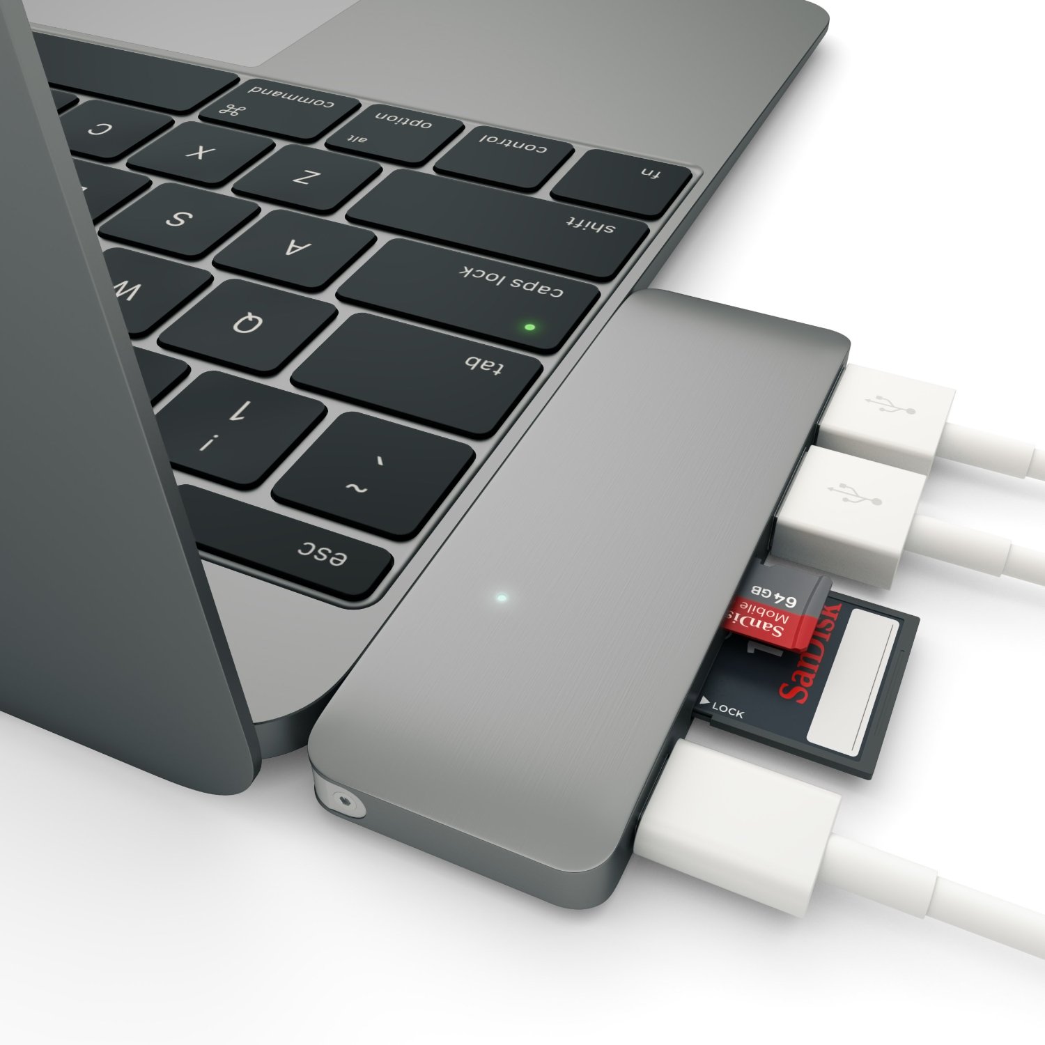 Tο Satechi Type-C Pass Through USB Hub με USB-C υποδοxή διαθέτει θύρα φόρτισης USB-C, 2 θύρες USB 3.0, μία υποχοδή για SD card και μία για Micro SD card καλύπτοντας κάθε ανάγκη σύνδεσης περιφεριακού στο MacBook 12", MacBook Pro 13" ή 15" (Late 2016) ή σε φορητό υπολογιστή με θύρα USB-C.