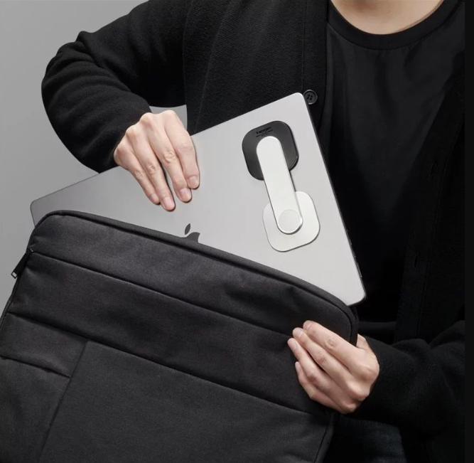 Η βάση τοποθετείται με ασφάλεια στον φορητό υπολογιστή σας ή την οθόνη σας, μέσω της αυτοκόλλητης ταινίας 3M VHB. Ο εργονομικός του σχεδιασμός σας επιτρέπει να προσαρμόζετε τη γωνία θέασης και να περιστρέφετε εύκολα το τηλέφωνο ανάλογα με τις ανάγκες σας, ταυτόχρονα διπλώνει για την εύκολη μεταφορά του.