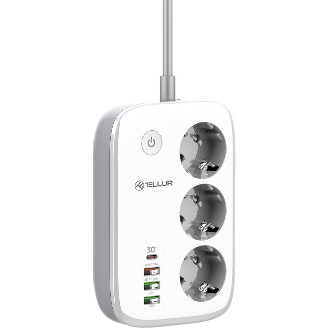 Το πολύπριζο Smart Wi-Fi Power Strip της Tellur είναι η τέλεια λύση για όλες τις ανάγκες φόρτισης και παροχή ρεύματος στον χώρο σας! Είναι εξοπλισμένο με προηγμένες λειτουργίες, όπως πρόσθετες θύρες φόρτισης, 1 x Type C PD, 30W, 1 x USB-A QC 3.0 18W και 2 x USB-A x 2.4A 12W, ώστε να έχετε όλη την ισχύ που χρειάζεστε και να έχετε όλες τις συσκευές σας φορτισμένες και έτοιμες για χρήση.