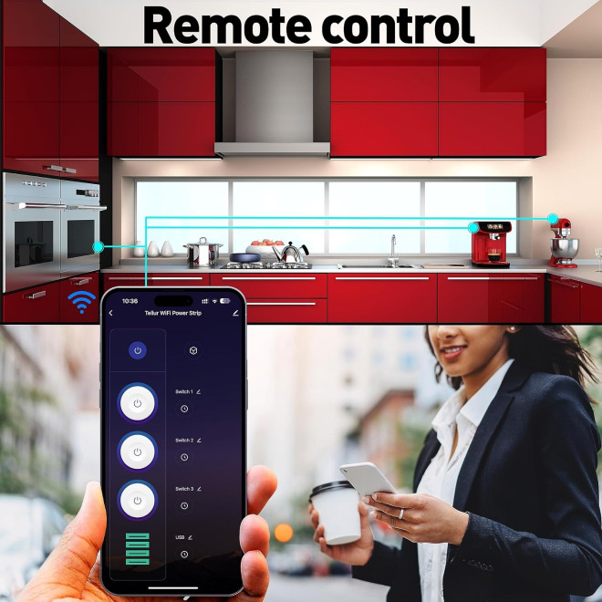 Επίσης, κάθε ένα από τα βύσματα μπορεί να ελεγχθεί ξεχωριστά μέσω μιας εφαρμογής. Η υποδοχή WiFi με θύρες φόρτισης USB είναι εξοπλισμένη με εξαρτήματα υψηλής ποιότητας και βελτιωμένα κυκλώματα που εξασφαλίζουν ηλεκτρικές οικιακές συσκευές. Το πολύπριζο προστατεύεται επίσης από υπερφόρτωση, υπερβολικό ρεύμα, βραχυκύκλωμα και υπερβολική θερμοκρασία για να εξασφαλίσει τις συνδεδεμένες συσκευές.