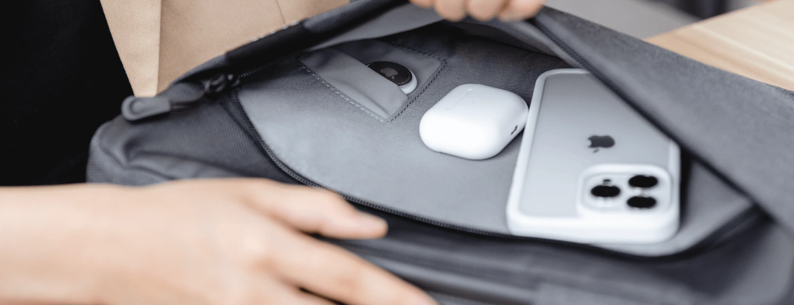 Η μαλακή εσωτερική επένδυση της προστατεύει από γρατσουνιές και πτώσεις, ενώ η εξωτερική τσέπη σας επιτρέπει να αποθηκεύετε αξεσουάρ όπως ακουστικά, Powerbank, Smartphone και πολλά άλλα. Στο εσωτερικό της θήκης υπάρχει μια κρυφή τσέπη AirTag, που σας επιτρέπει να τοποθετήσετε το AirTag σας και να παρακολουθείτε που βρίσκεται η τσάντα σας ανά πάσα στιγμή.