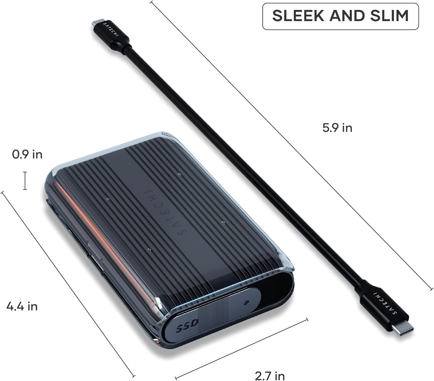 Είναι κατασκευασμένο από premium αλουμίνιο υψηλής ποιότητας και συνδυάζει την ανθεκτικότητα με τον υπέροχο σχεδιασμό. Το περίβλημα Polycarbonate ενισχύει την απαγωγή θερμότητας, προστατεύοντας το SSD από υπερθέρμανση και εξασφαλίζοντας τη συνεχή λειτουργία σε κάθε μεταφορά δεδομένων.