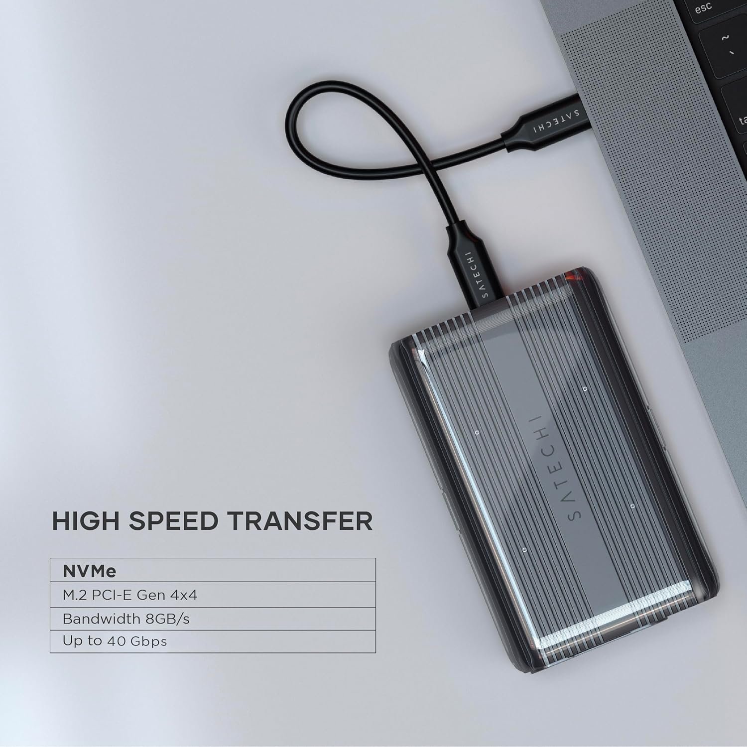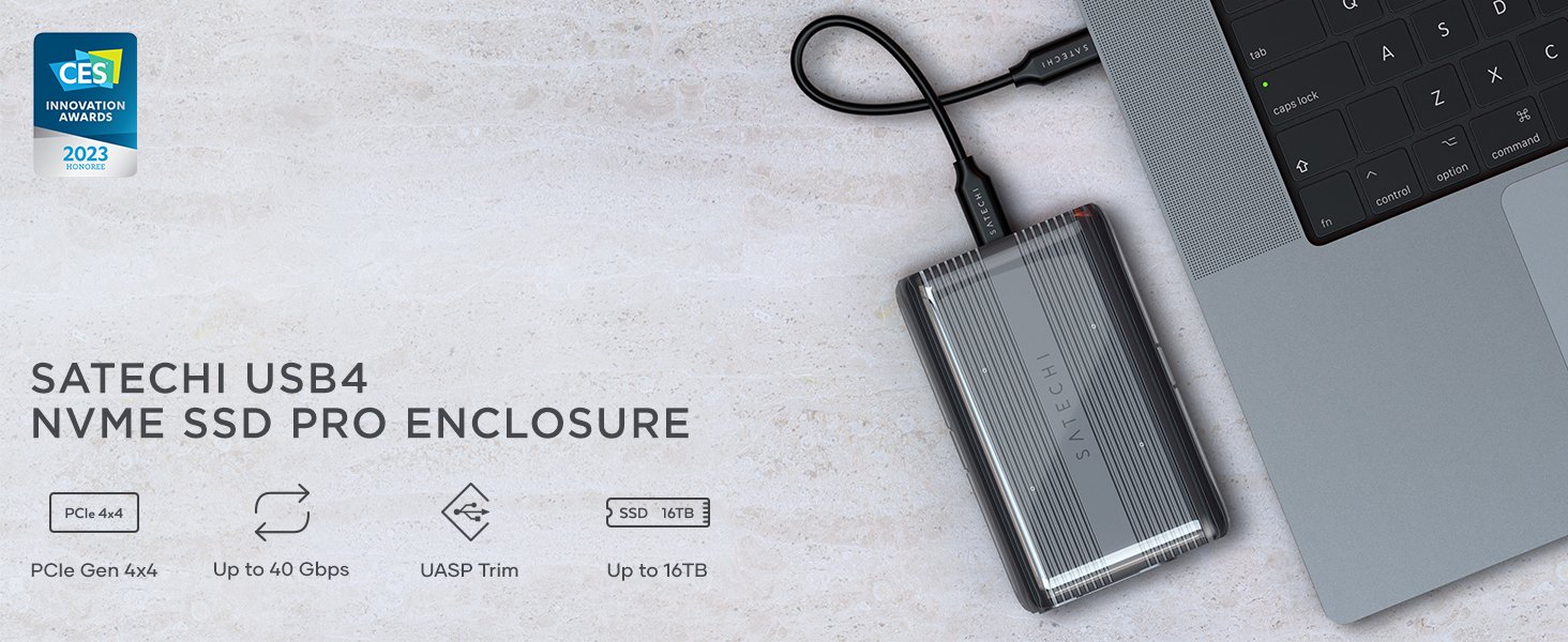Η θήκη εξωτερικού σκληρού δίσκου Enclosure USB4 NVMe SSD Pro της Satechi είναι σχεδιασμένη με ενσωματωμένο πρωτόκολλο Next-Gen USB4 και με pερίβλημα που υποστηρίζει εντυπωσιακή ταχύτητα μετάδοσης στην θύρα upstream, φτάνοντας έως και τα 40 Gbps.