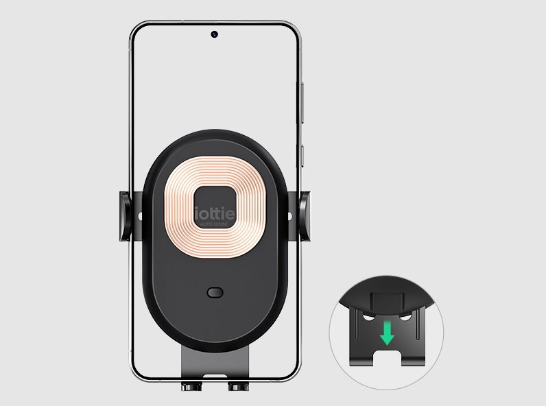 Το κάτω πόδι στήριξης ρυθμίζεται μέσω ενός κουμπιού και μπορεί να χαμηλώσει για να βοηθήσει στην τοποθέτηση των μεγάλων συσκευών. Αυτό επίσης βοηθά στην ευθυγράμμιση των πηνίων Qi για μια αποτελεσματική εμπειρία φόρτισης. Προσφέρει ισχύ και ευελιξία στο δρόμο για ασφαλέστερη οδηγική εμπειρία σε οποιοδήποτε όχημα.