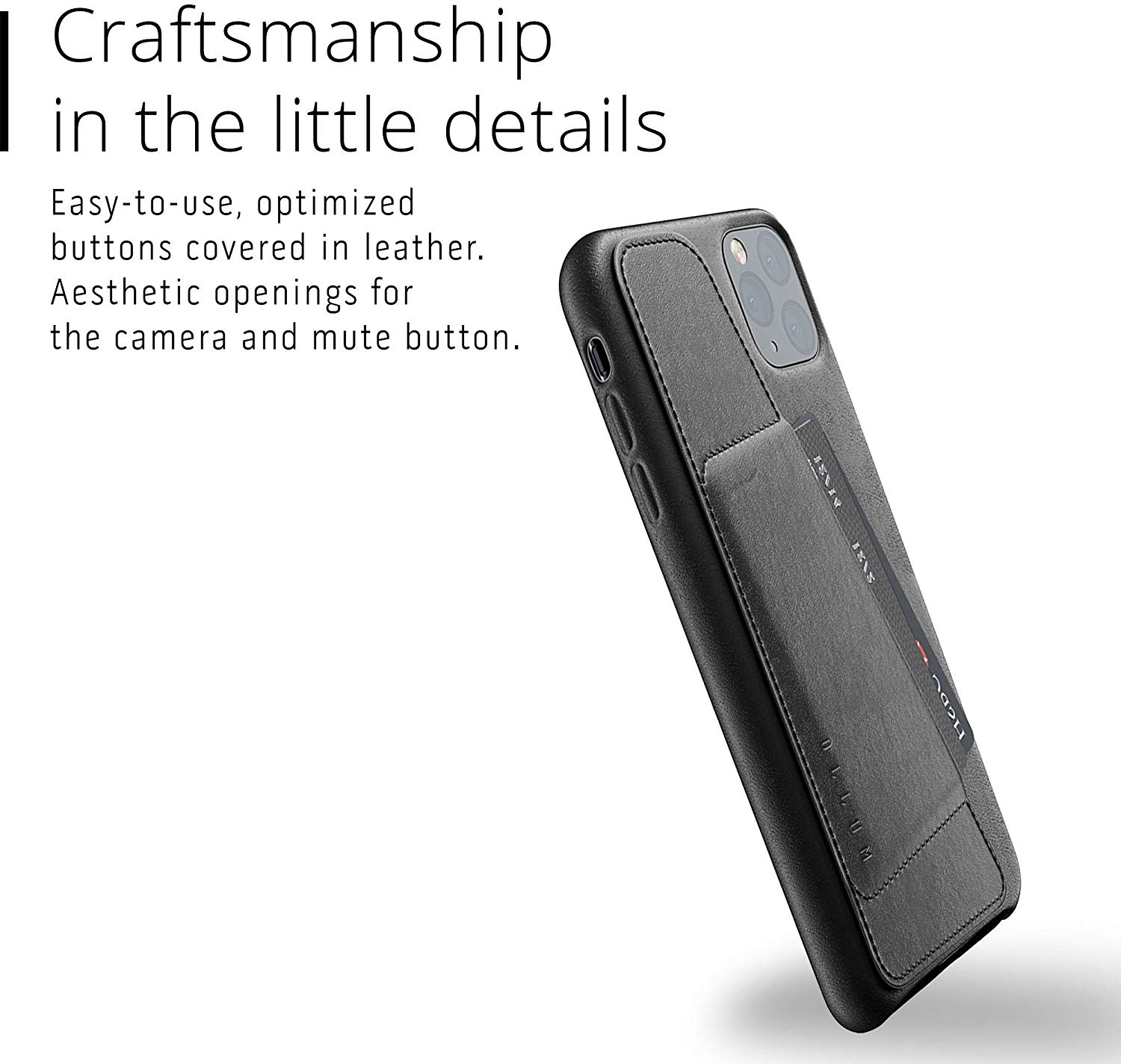 Πρόκειται για μία χειροποίητη κομψή θήκη, σχεδιασμένη για να κρατάει 2-3 από τις βασικές σας κάρτες και το iPhone 11 Pro Max σας με ασφάλεια. Είναι κατασκευασμένη από τα χαρακτηριστικής ποιότητας δεψασμένα δέρματα της MUJJO.